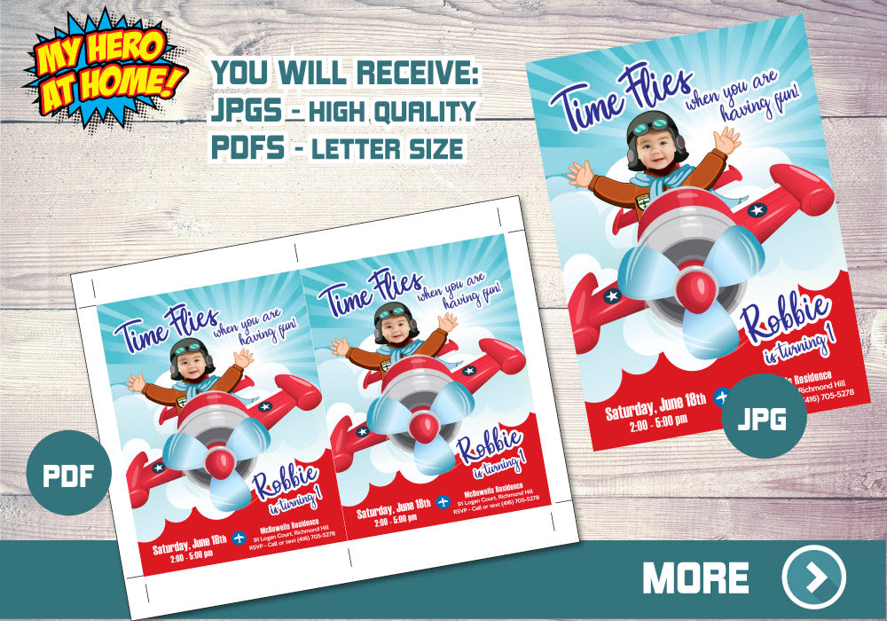 Custom Airplane Birthday Invitation, Airplane photo Invitation, Airplane Invitation with photo, Time flies birthday invitation, Come fly with me invitation, Fly on over invitation, This year has flown by invitation, Airplane Photo Invitation, Air Pilot Party Invitation.