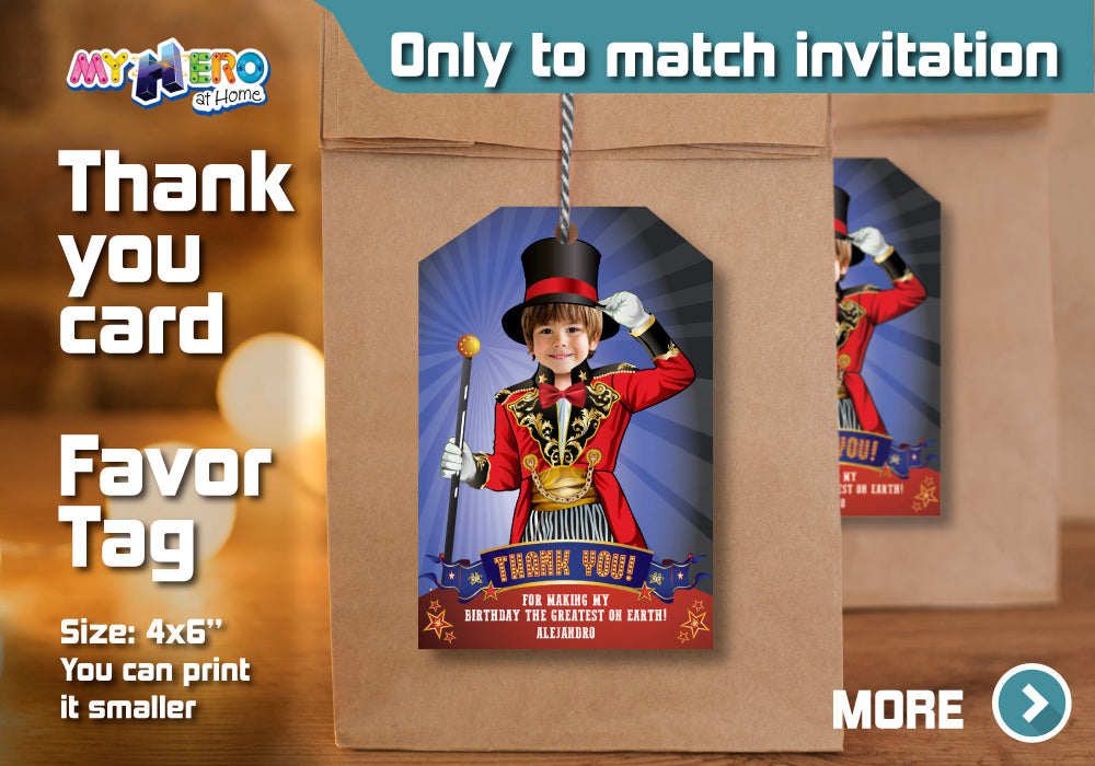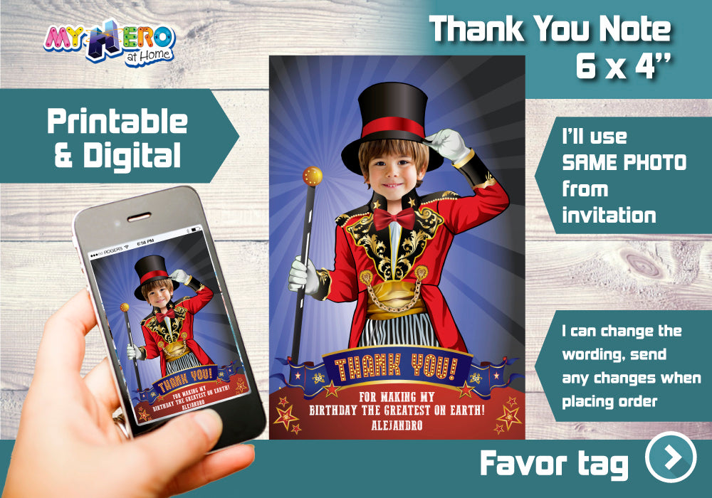 Turn your little boy into the greatest Ringleader for his custom Circus Birthday Invitation with photo, Carnival photo Invitation, Carnival theme party, Circus Thank You Card, Circus Favor Tag, Carnival Thank You Card, Carnival Favor Tag, Ringleader Favor tag, Circus goodies