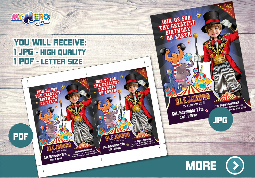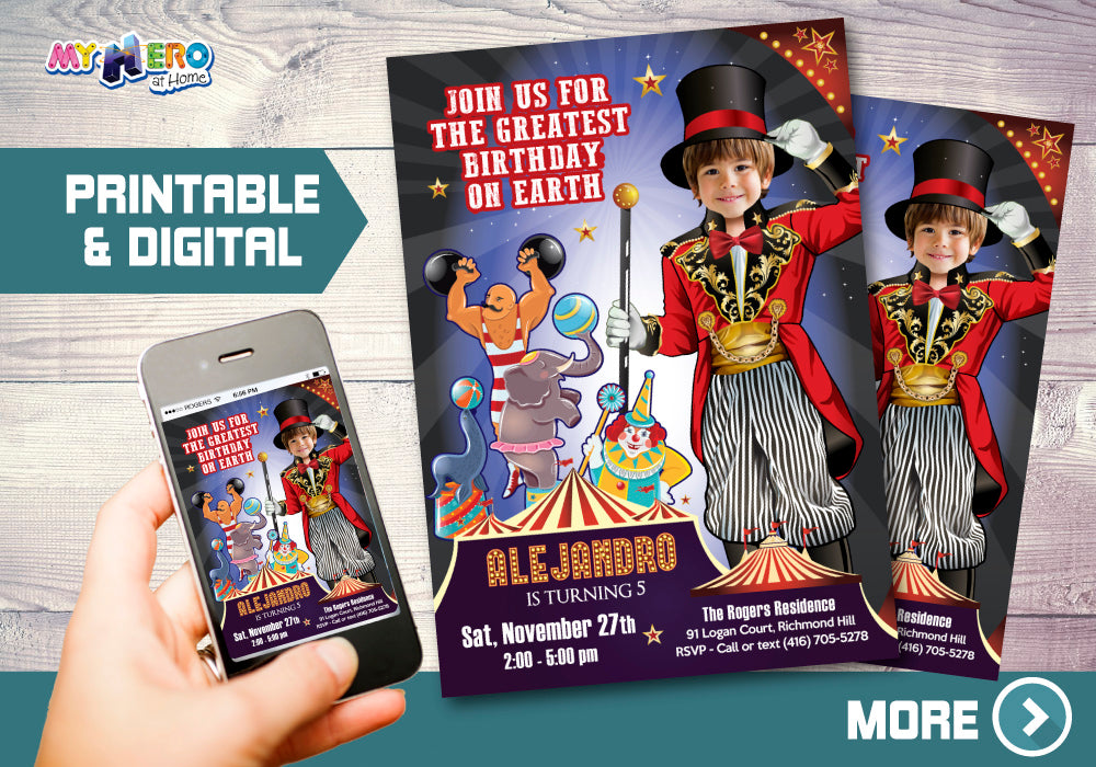 Circus Birthday Invitation, Ringmaster Invitation, Carnival Party Invitation, The greatest show birthday, Circus photo invitation. 546