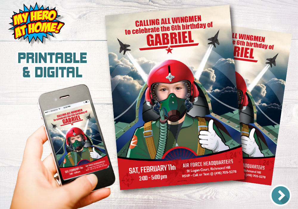 Personalized Fighter Jet Invitation, Pilot photo Invitation, Air Force themed birthday, Fighter Jet photo invitation.