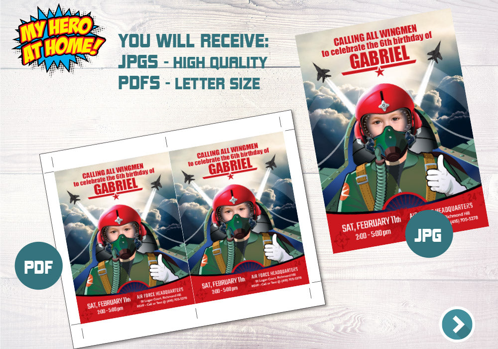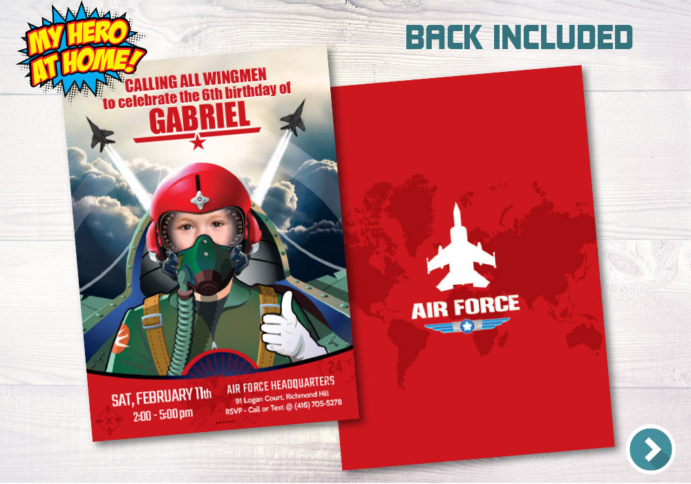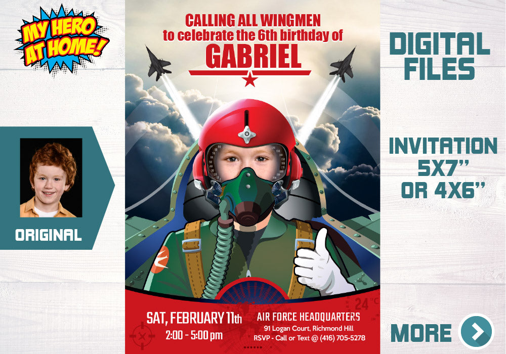 Custom Jet Pilot photo party Invitation, Air Force Fighter Pilot birthday invite with photo. 619
