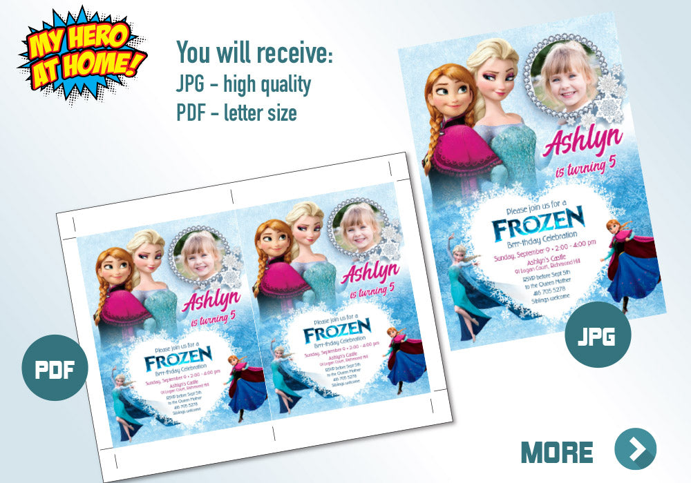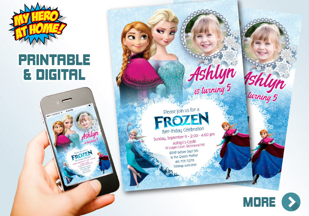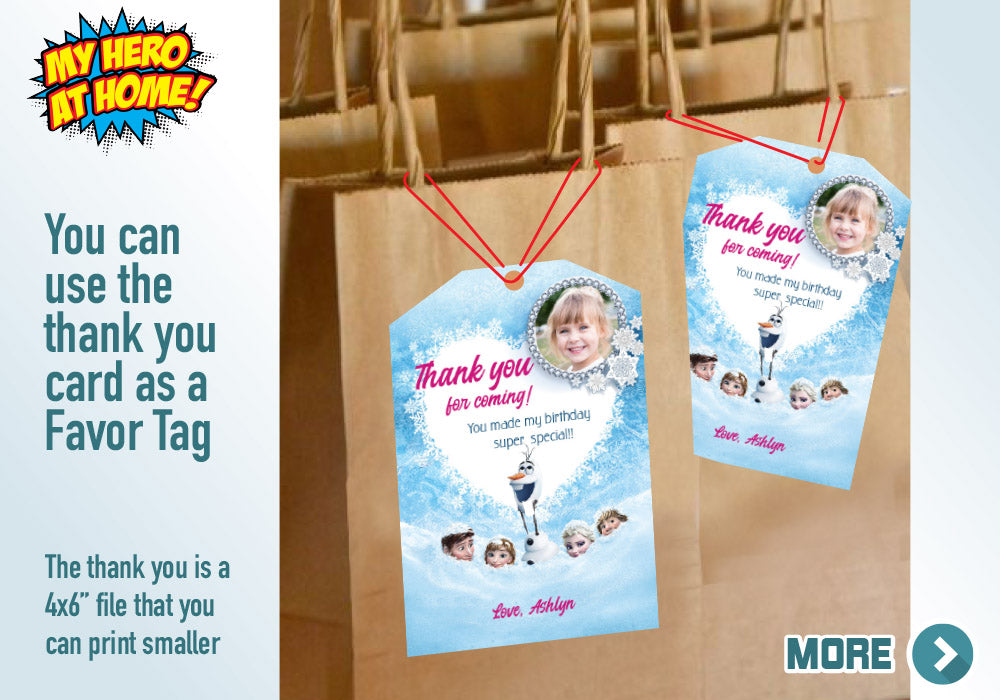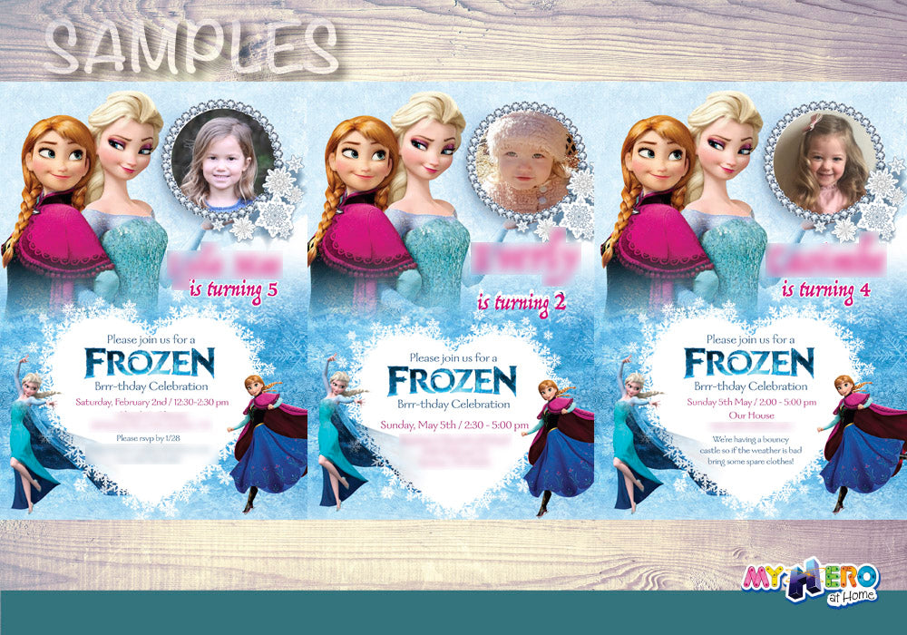 Custom Frozen Birthday Invitation. Frozen Party invitation. Unique Frozen Birthday Invitation with your little girl as the star of her Invitation along with Elsa and Anna, Custom Frozen thank you, frozen photo favor tags, Custom frozen party favors.