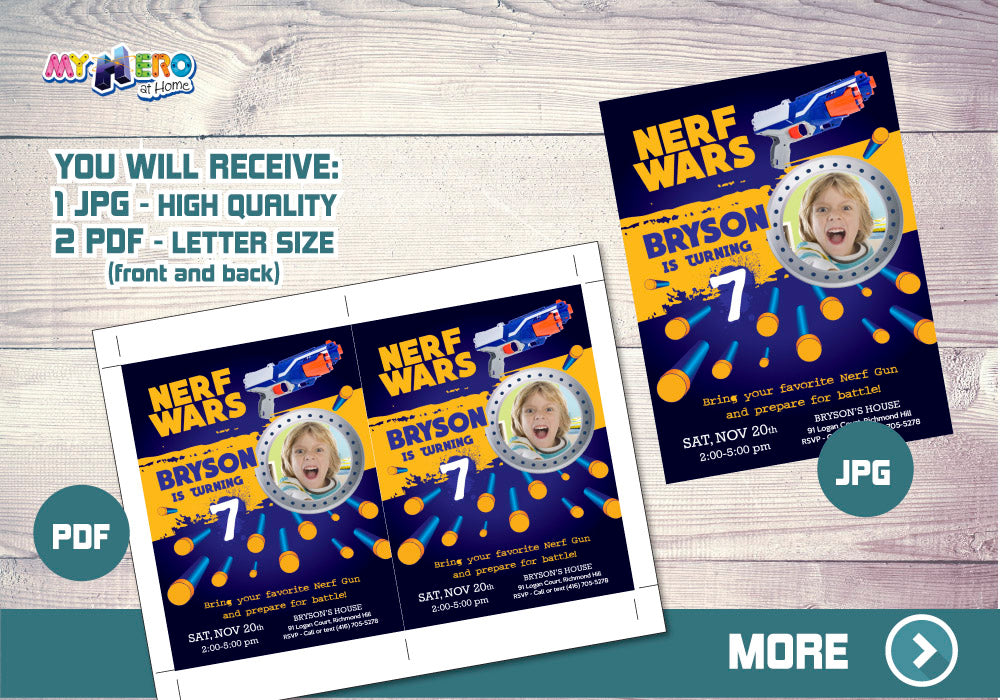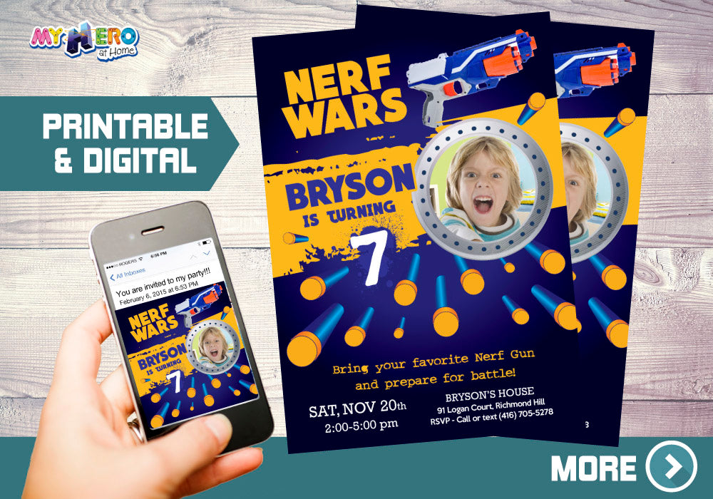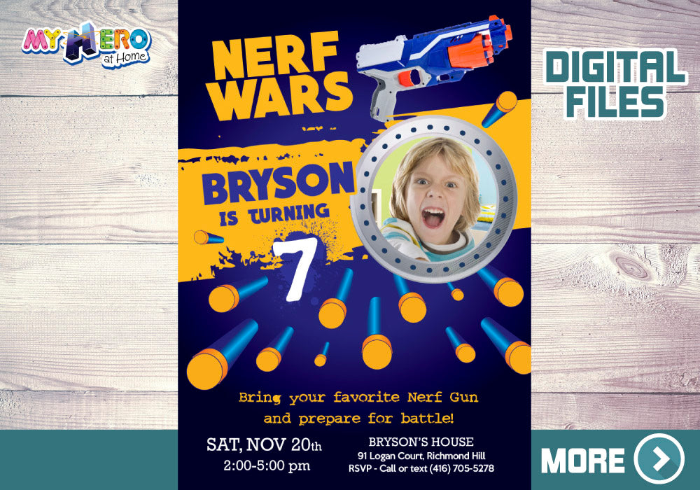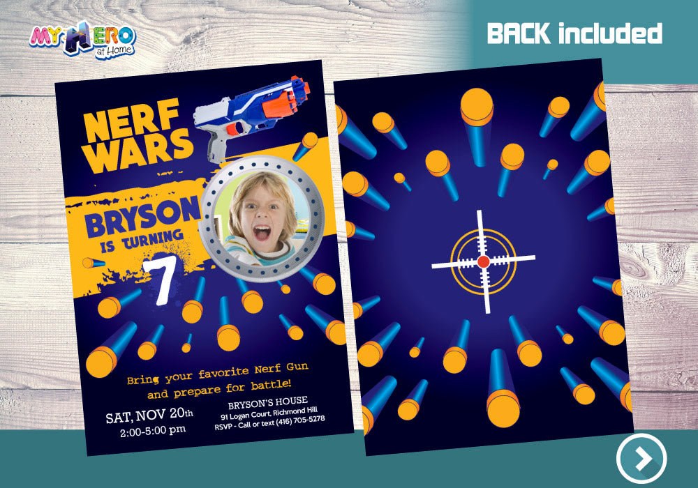 Nerf Birthday Invitation with birthday boy photo, Dart Birthday Invite, Nerf Guns party template. 552