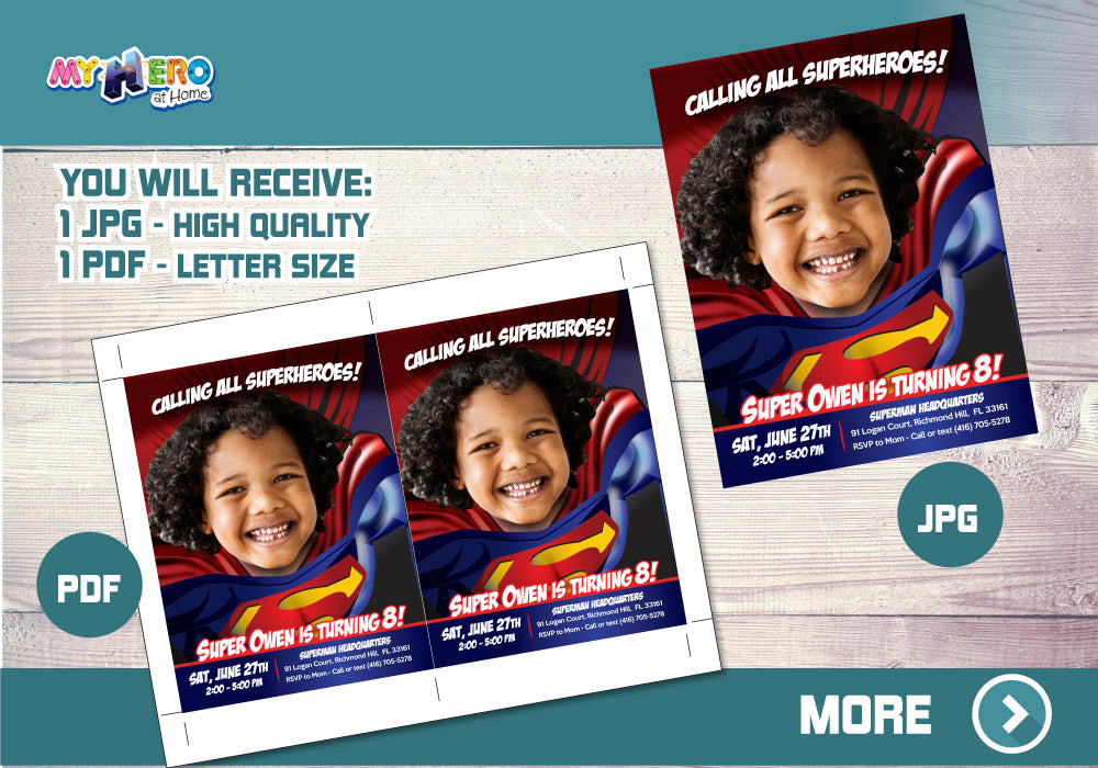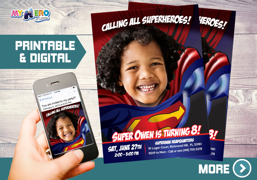 Superman photo Invitation, Superman party Invitation, Superman Birthday Invitation, Superman theme party. 125
