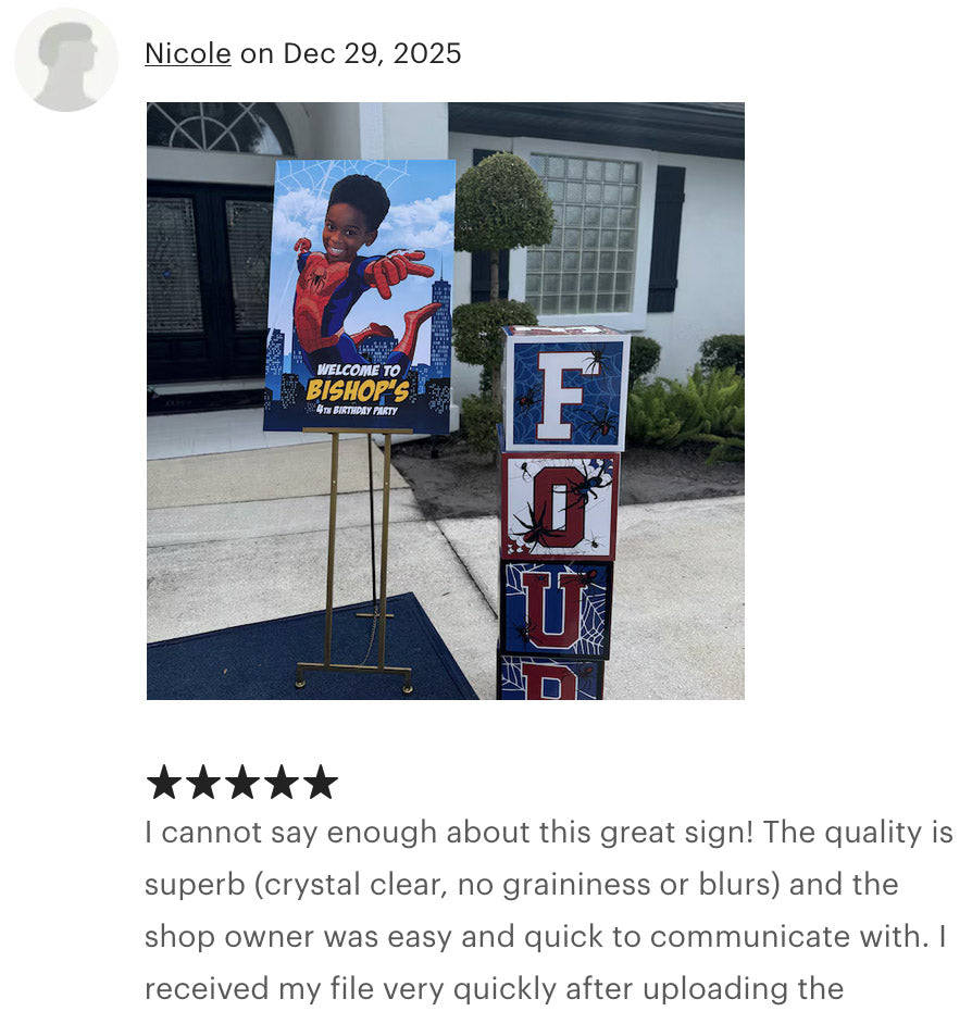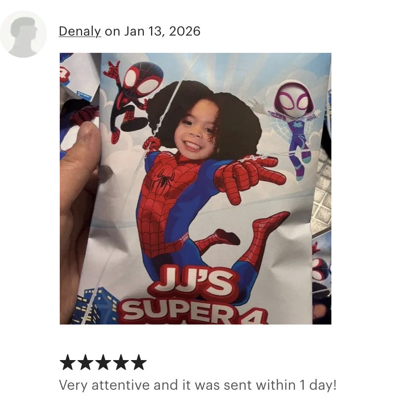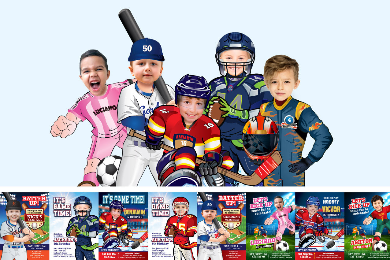 From superheroes, to star wars, astronauts, transformers, princesses and much more! Customize your invitation, party decor, posters, party favors, cake toppers with the photo of your child.
