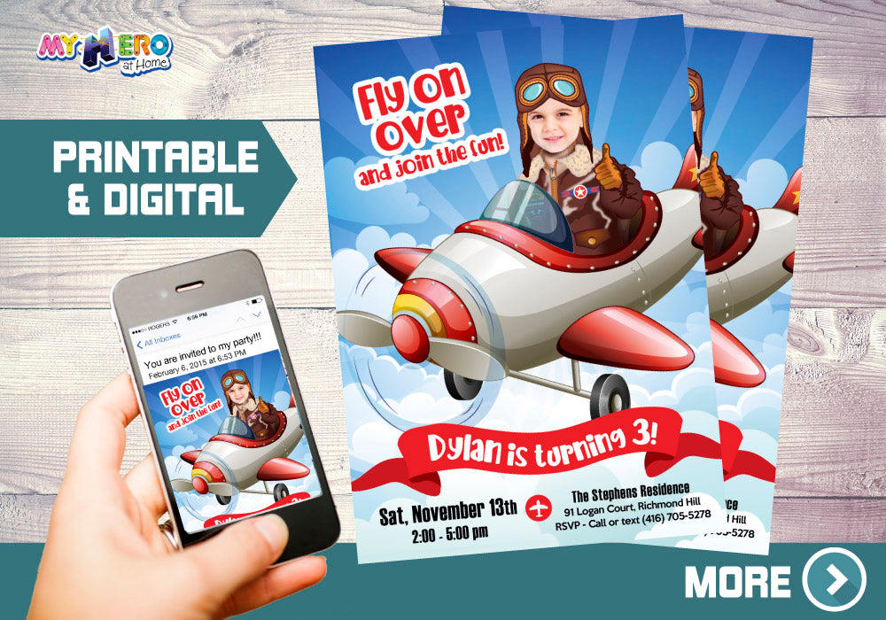 Airplane photo Invitation, Time flies birthday invitation, Come fly with me invitation, Fly on over invitation, This year has flown by invitation