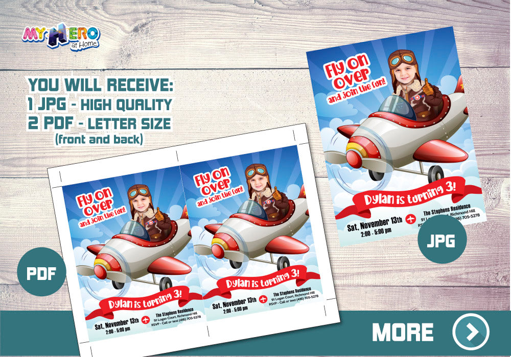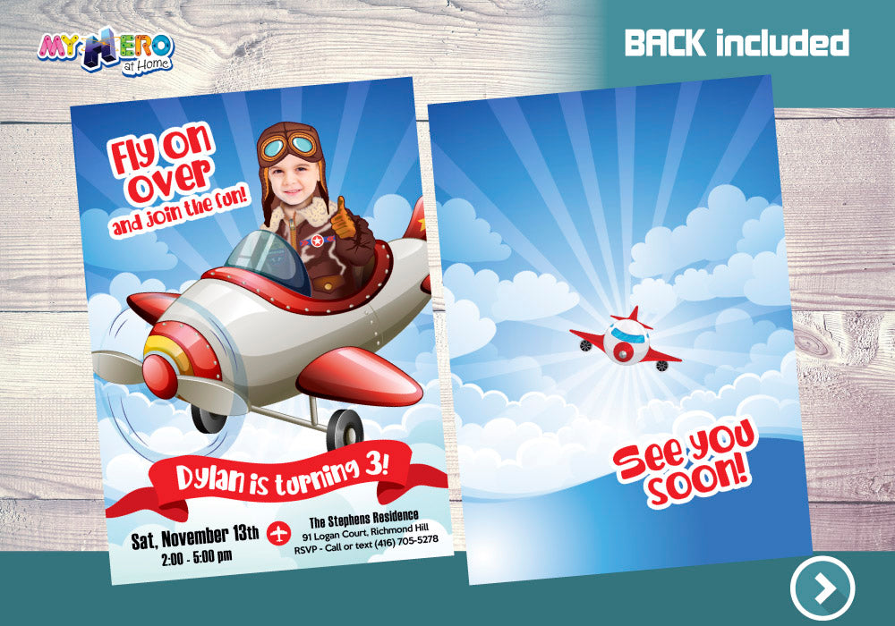 Time Flies party Invitation, Personalized Vintage Airplane Birthday photo Invitation. 548