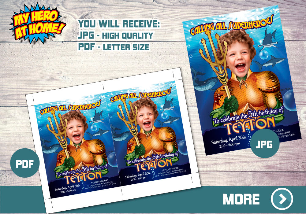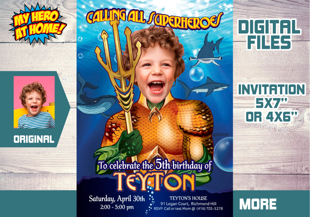 Aquaman photo Invitation, Aquaman Party, Aquaman Digital, Aquaman theme Party, Aquaman Birthday. 188