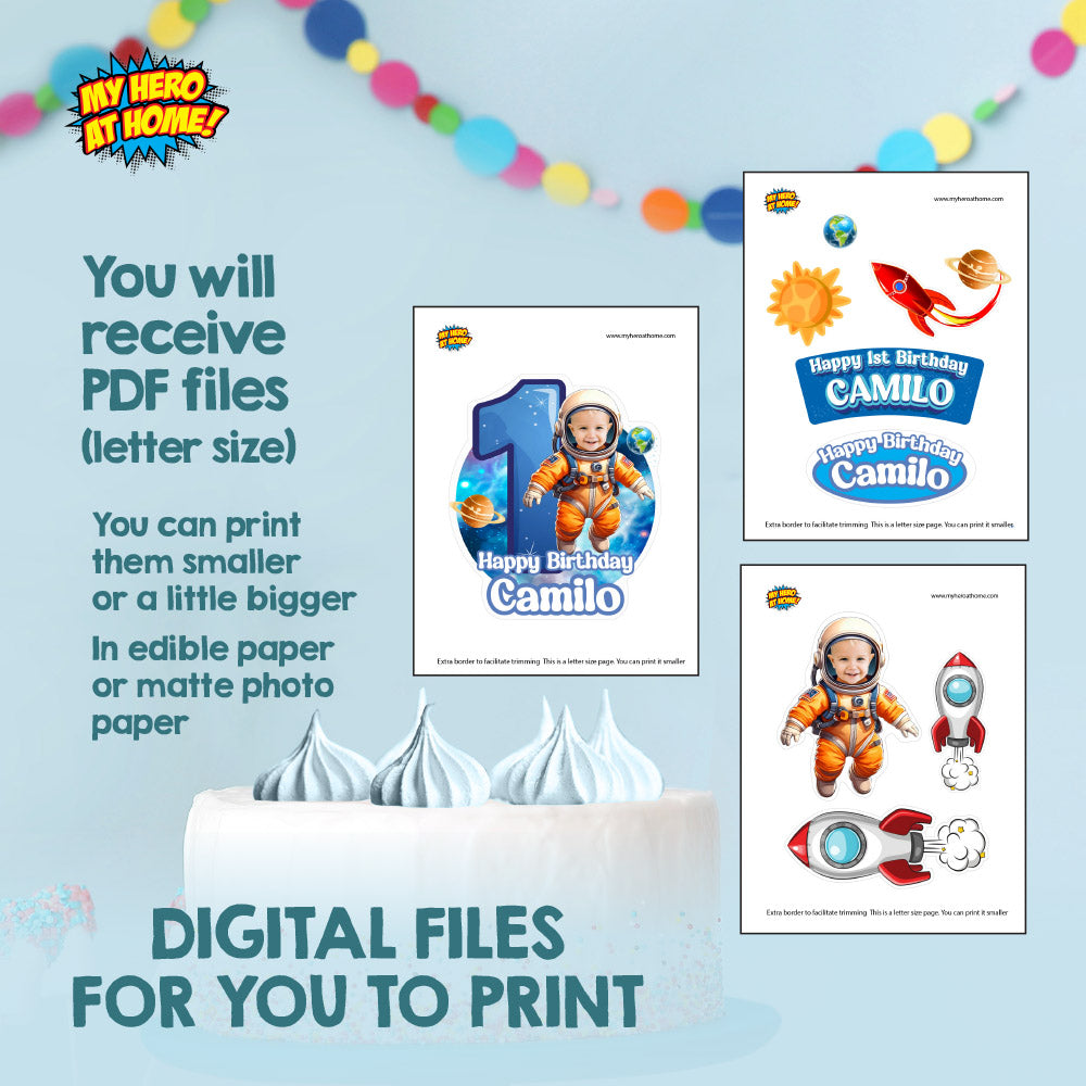 Baby Astronaut Cake topper with photo, 1st trip around the sun smash Cake. 2284CT2