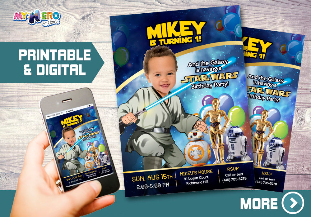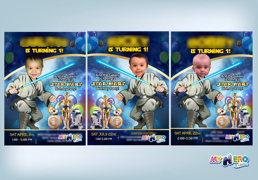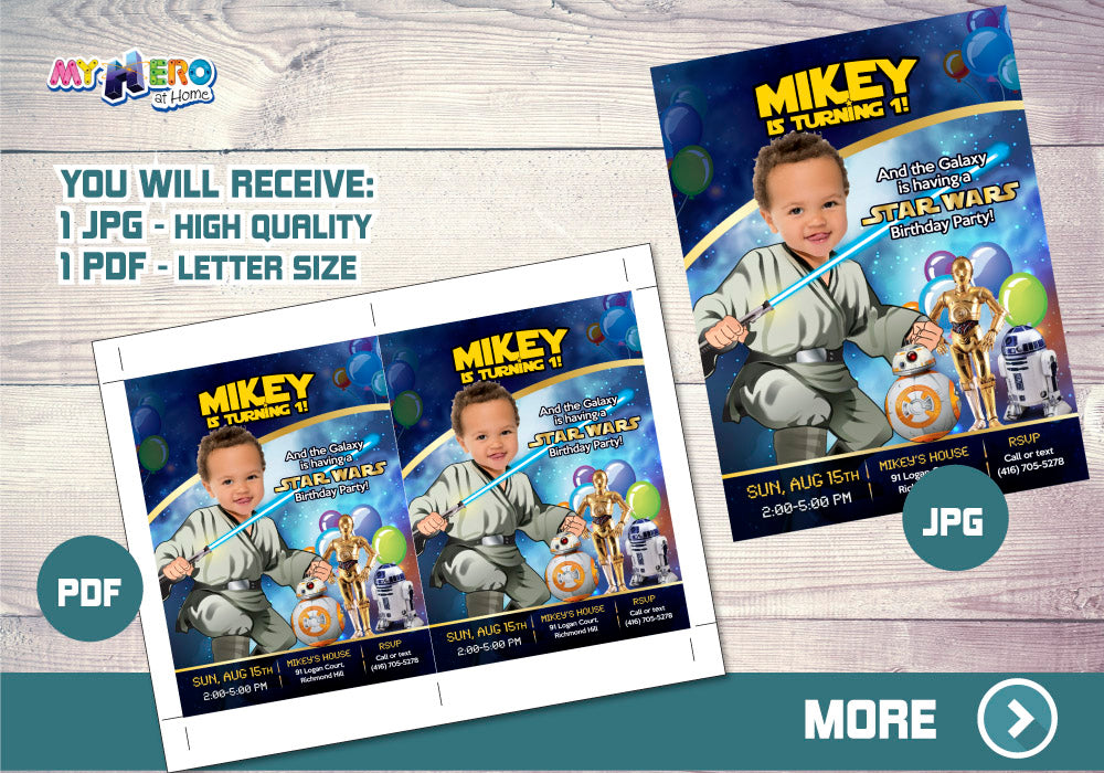 Baby Jedi 1st Birthday Invitation with baby’s photo, Star Wars 1st Birthday template. 017