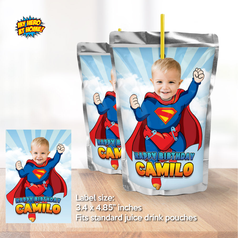 Take your Superman 1st birthday-themed party to the next level with these custom labels with your baby as the star!