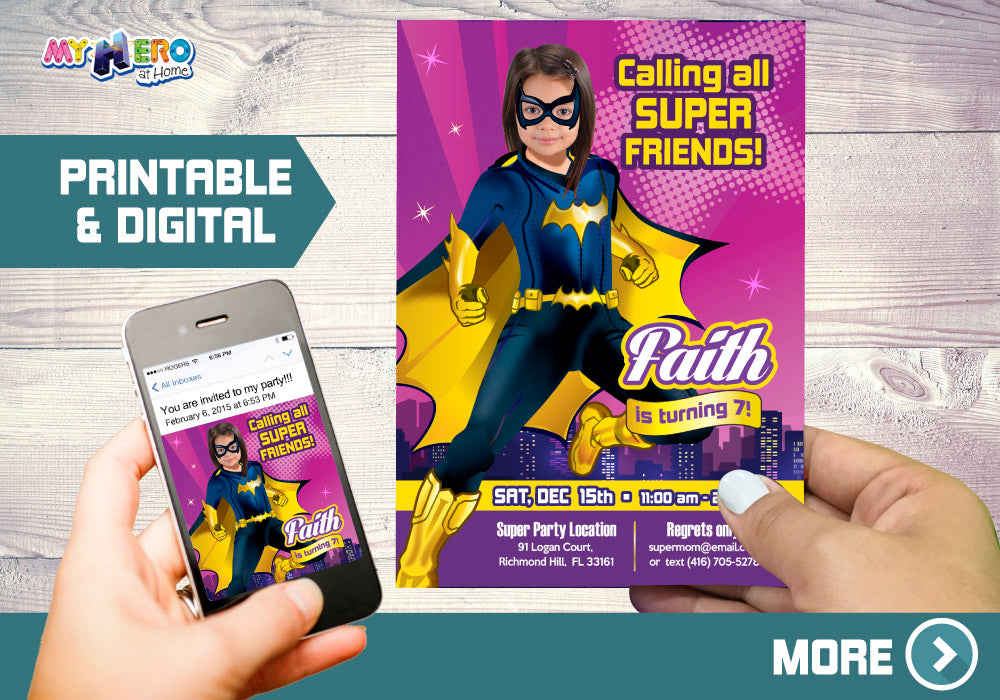 Batwoman Birthday Invite with your photo, Batwoman photo Invitation, Batwoman Party. 187