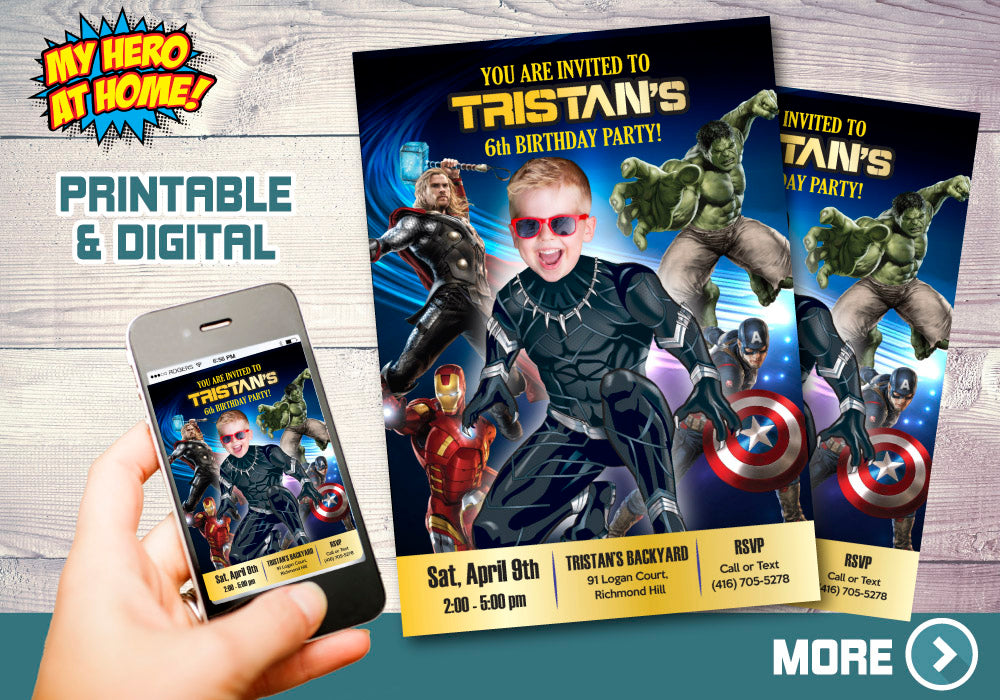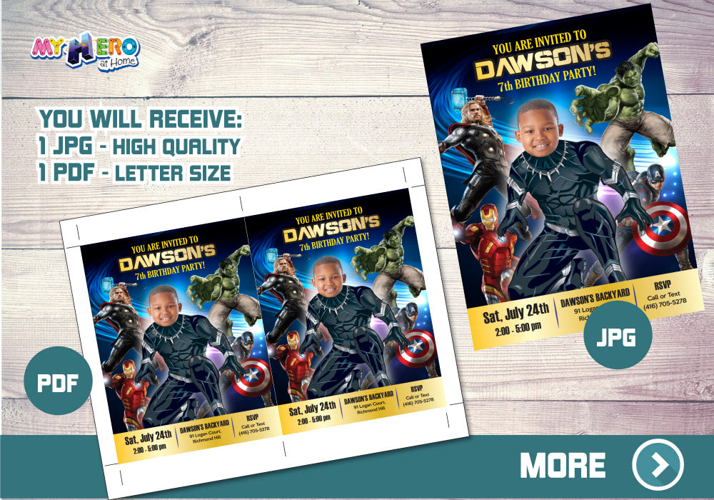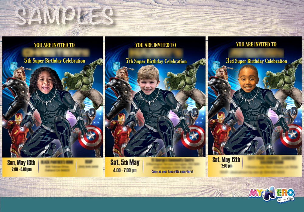 Black Panther photo Invitation, Black Panther Avengers Birthday Invite with photo. 170