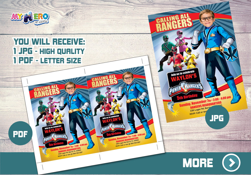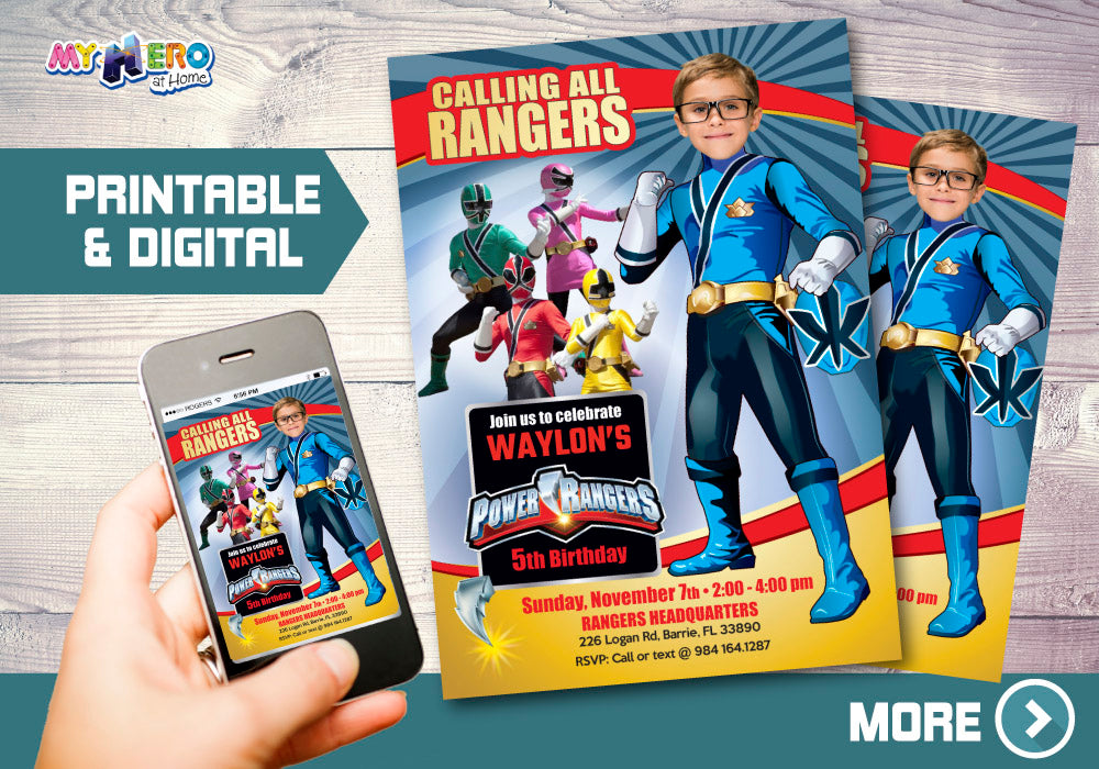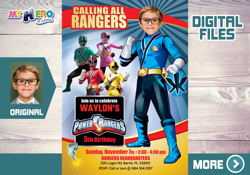 Personalized Blue Power Ranger photo Invitation, Blue Power Ranger Party template, Power Rangers theme party, Blue Power Ranger party ideas, Blue Power Ranger digital invite.