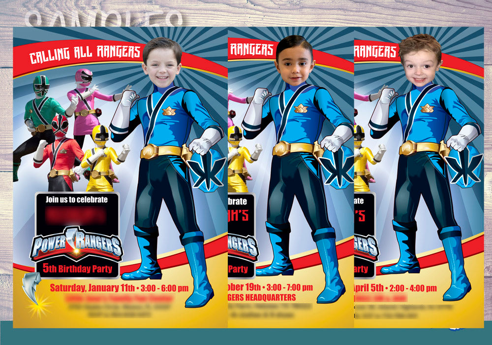 Blue Power Rangers Birthday Invitation, Blue Power Ranger Party photo invitation. 395