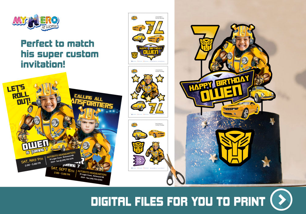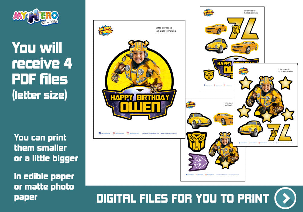 Custom Bumblebee Cake topper, Bumblebee photo cake topper, Bumblebee Cake Ideas, Bumblebee party decoration, Torta de Bumblebee, Fiesta de Bumblebee, Transformers Cake Topper, Transformers cake decor, Transformers printable cake.