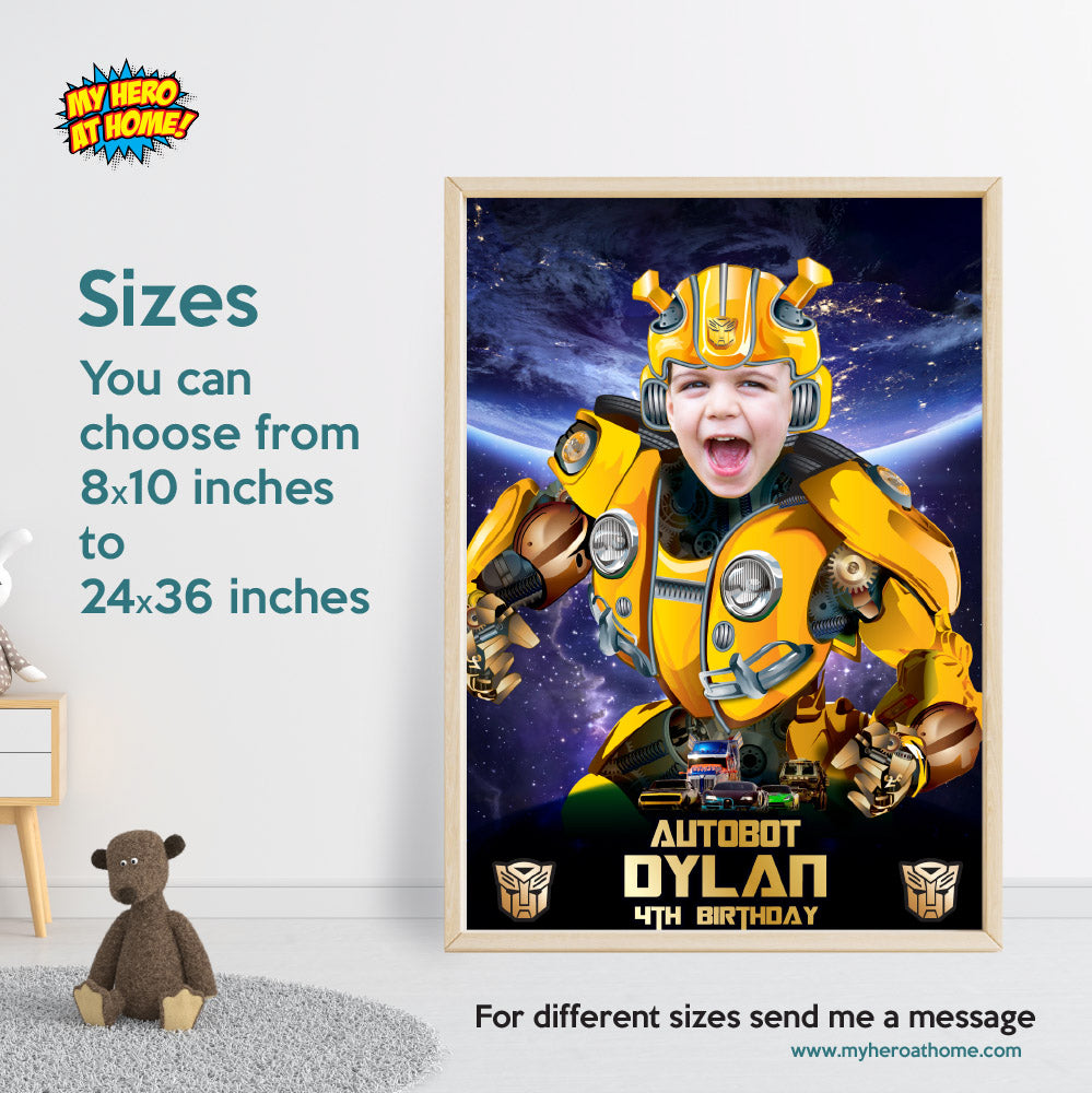 Turn your little boy into his favorite Autobot for his unique Bumblebee Poster, Bumblebee backdrop, Bumblebee decoration, Bumblebee Party decor, Bumblebee gifts, Transformers gifts, Autobots gifts.