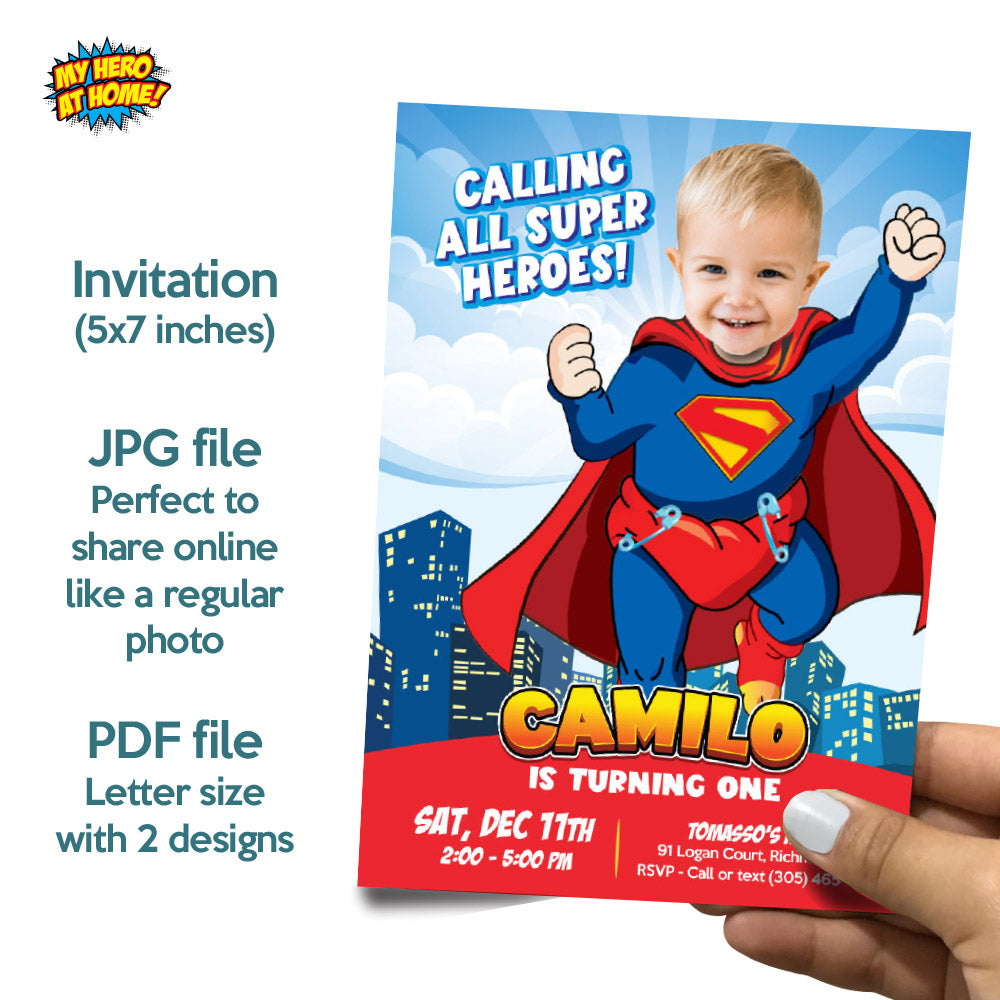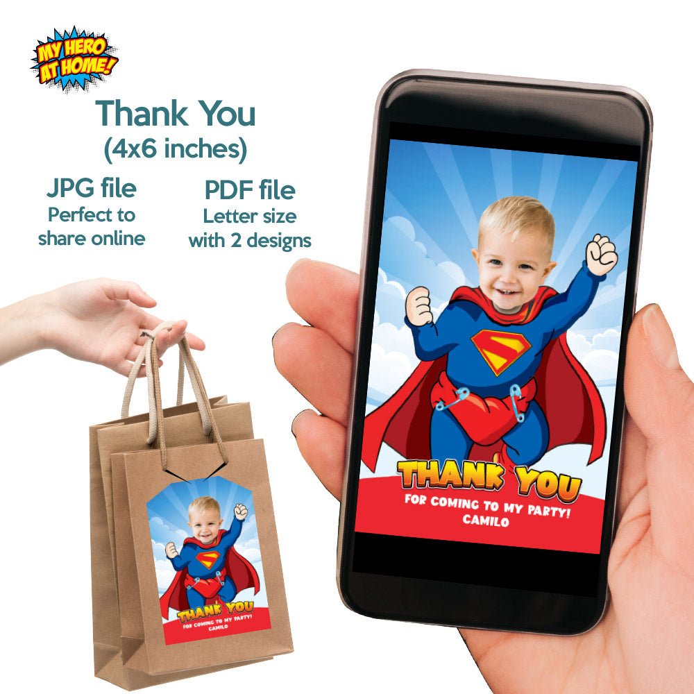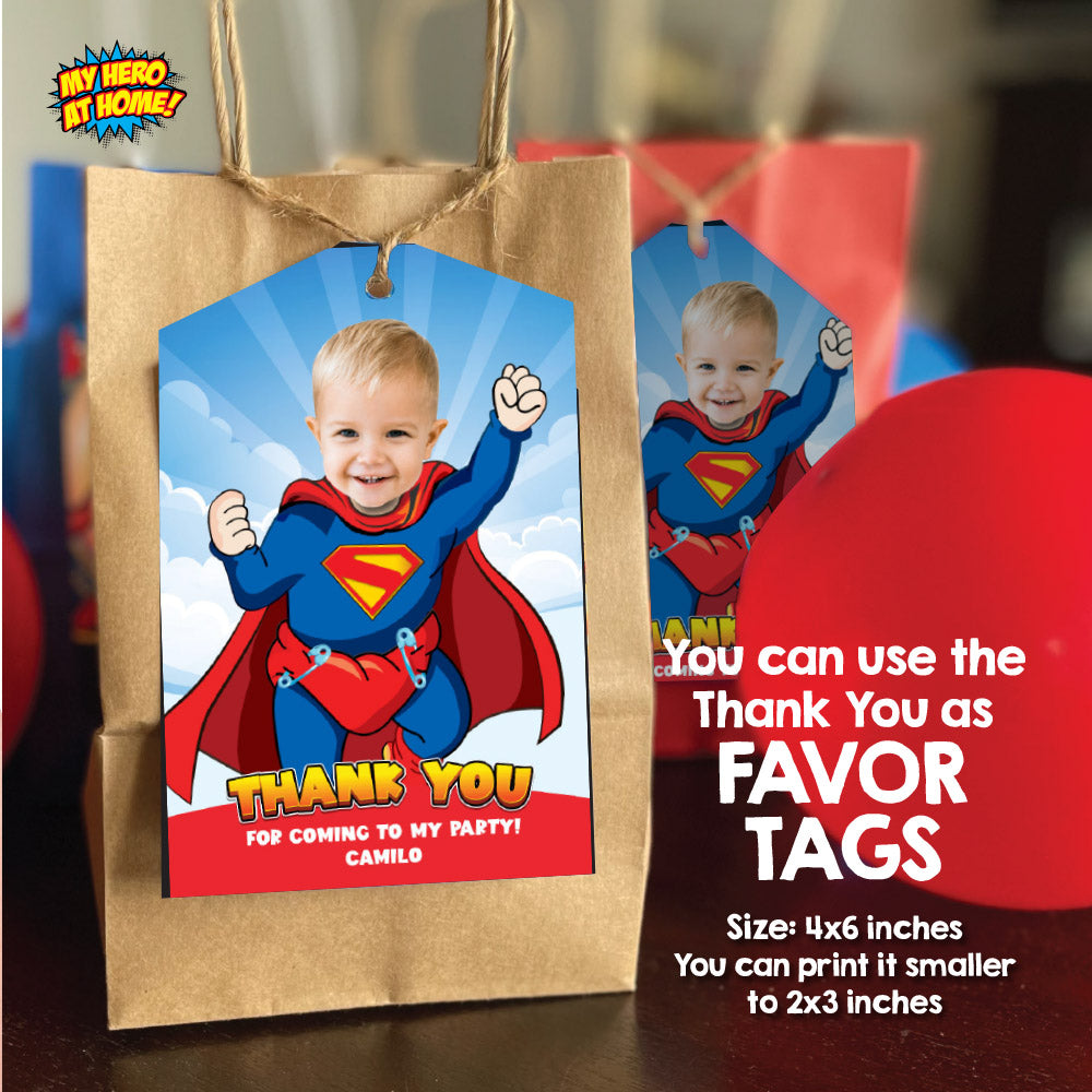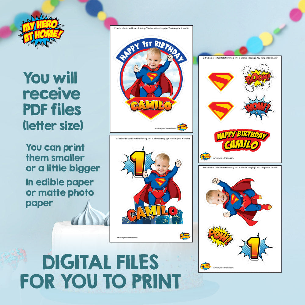 This set includes customized party items with your Baby as a super cute Superman to take his Baby Superman party to the next level! Baby Superman birthday invitation, Baby Superman thank you card / favor tag, Printable Baby Superman cake topper and Baby Superman Welcome sign with your kid as the star!