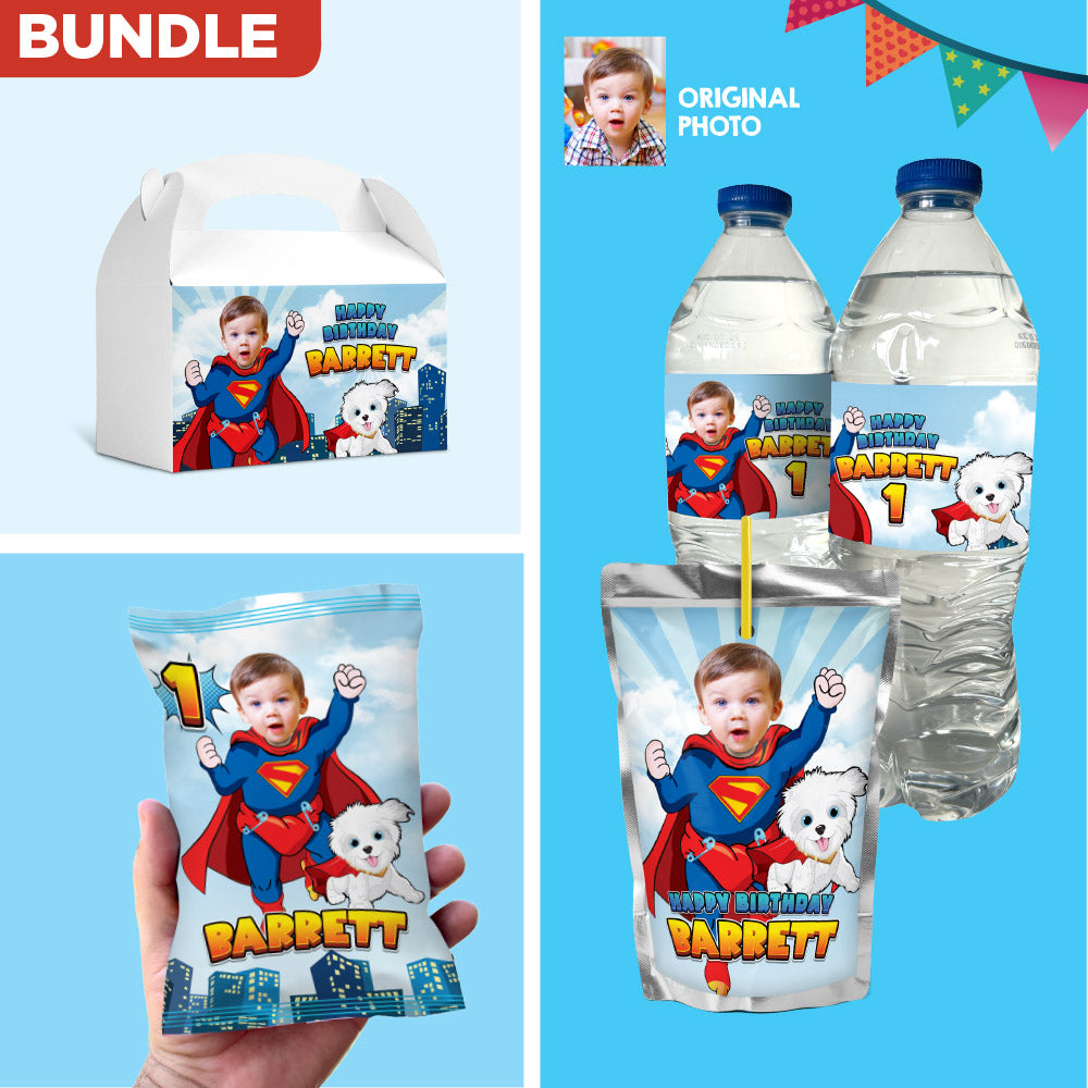 Bundle Baby Superman and Krypto snacks labels, water wrappers and capri sun labels, Potato Chips bags wrapper, Candy box labels. 2351B3
