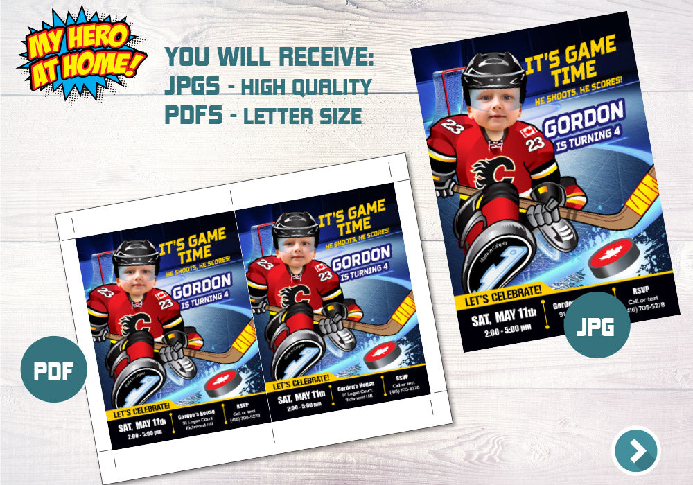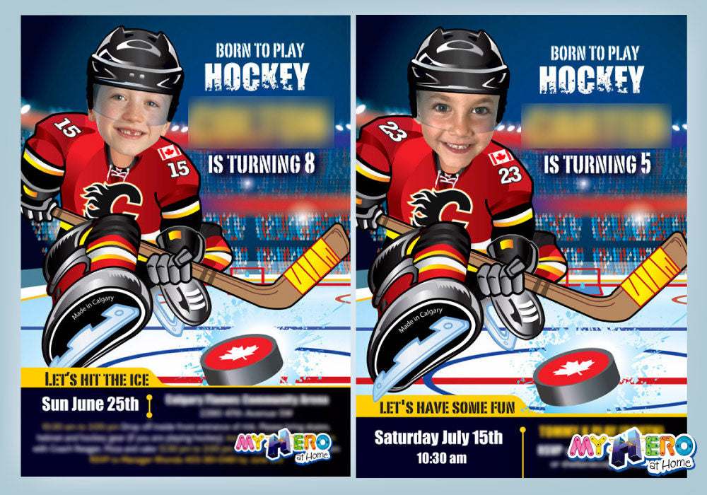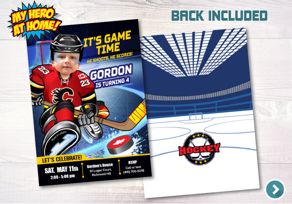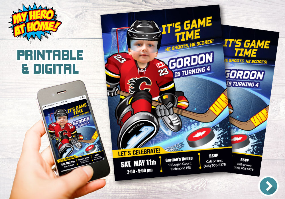 Calgary Flames Birthday party Invitation with photo, Flames kids theme party, Flames party template. 300C