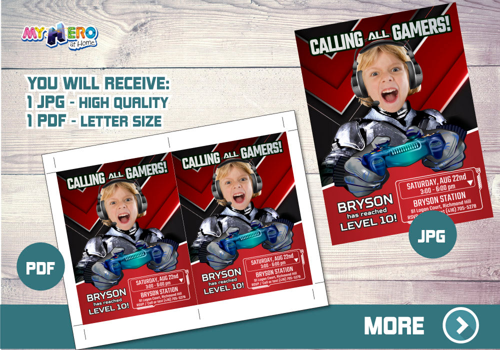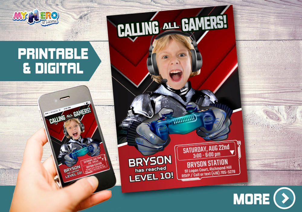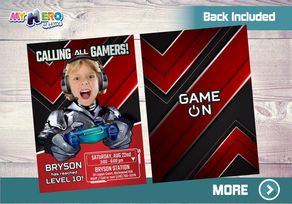 The Game Is On Photo Video Game Invitation, Gaming Birthday Party Invite, Minecraft party invite, Grand Theft Auto birthday invite, Fortnite birthday invitation.