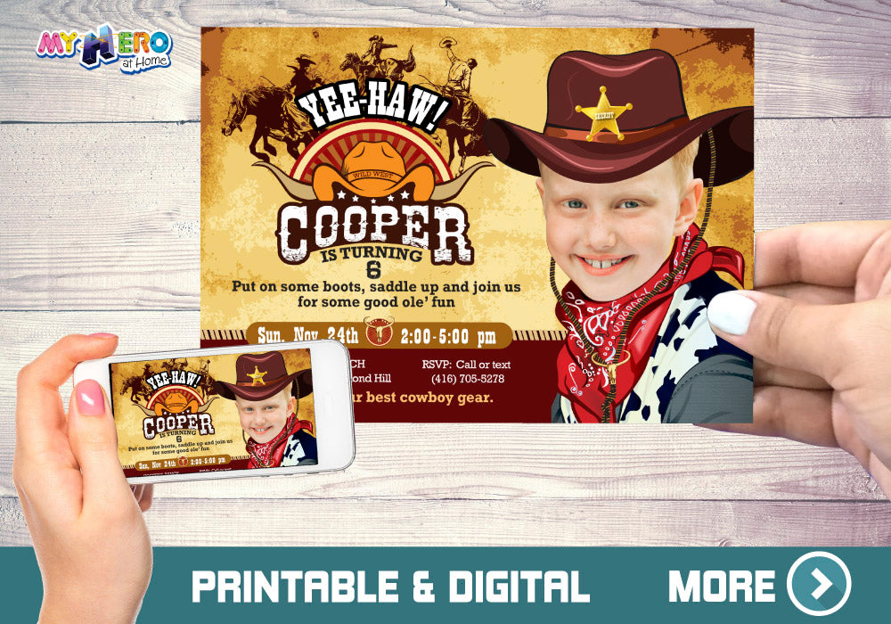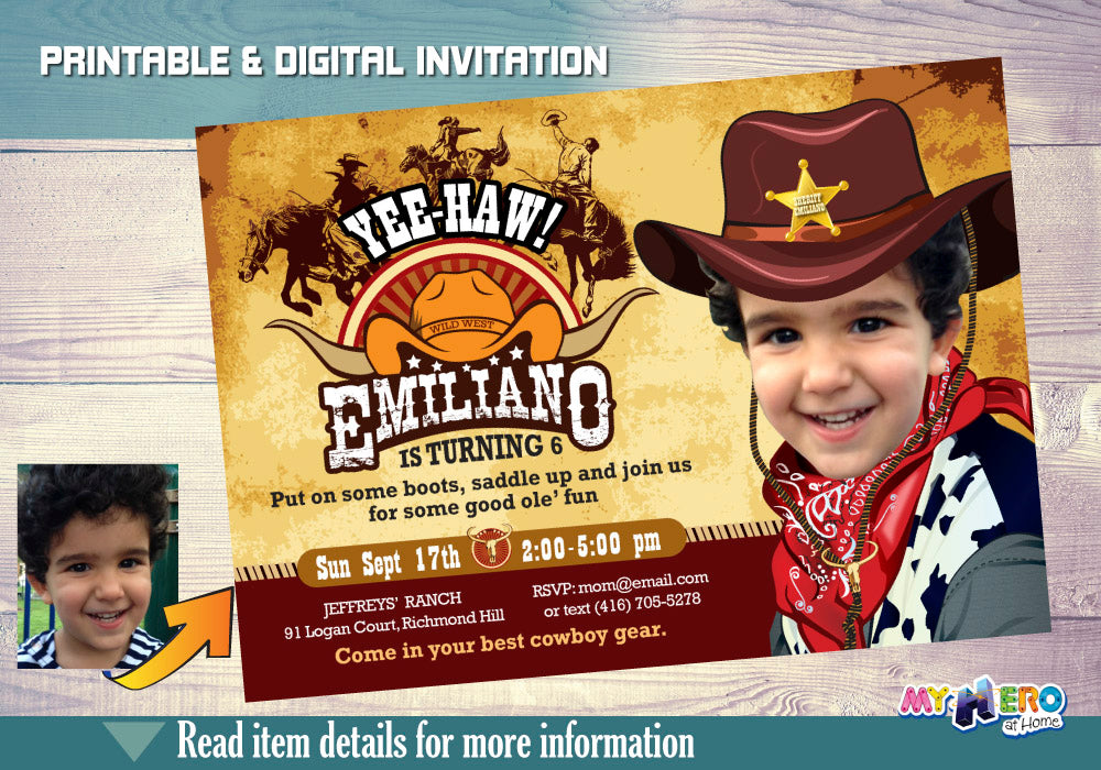 Cowboy Photo Invitation, Cowboy Party, Rodeo Party, Western Sheriff Birthday, Cowboy Digital Invitation. 203