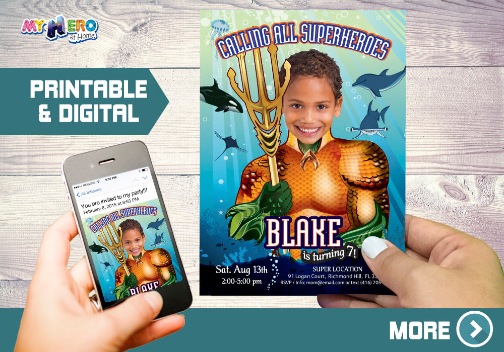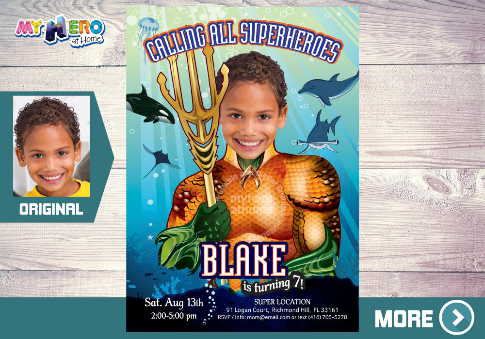 Custom Aquaman Invitation, Aquaman theme Party, King of the Seven Seas party, Aquaman Birthday, 189