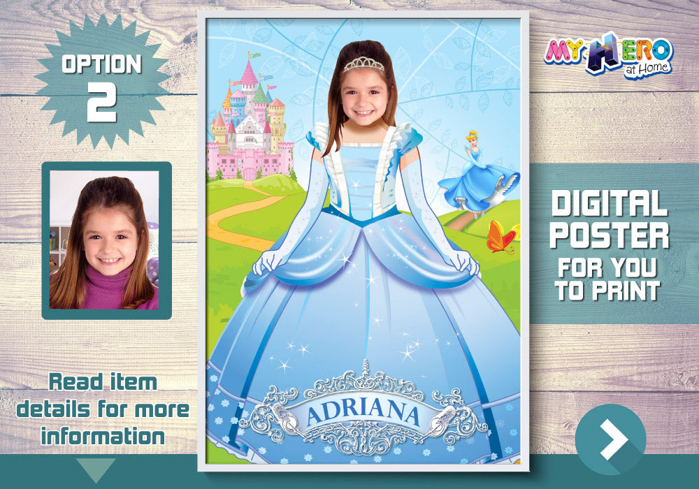 Personalized Cinderella poster with photo, Cinderella Photo decoration, Custom Cinderella Decoration, Cinderella Room Decor, Custom Cinderella Gifts, Cinderella Party Decor, Cinderella Party Decor, Cinderella bedroom.