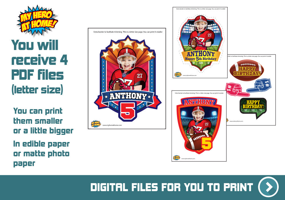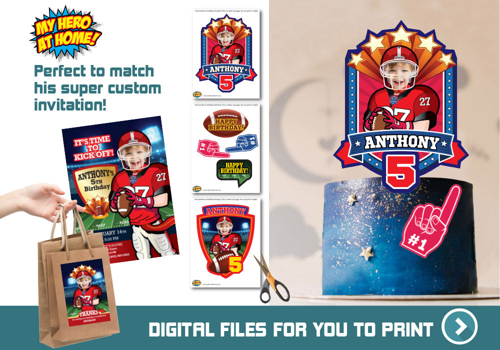 Printable Football Cake topper with your kid as the star, Football photo cake, Football DIY cake. 598B