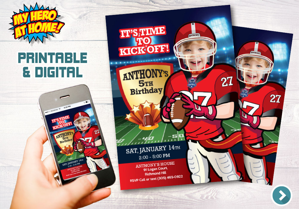 Personalized Football birthday Invitation, Football Digital Invite, Football theme party, Football party template, Football own photo invitation, Football birthday themed, Bulldogs kids Party, Bulldogs children invite