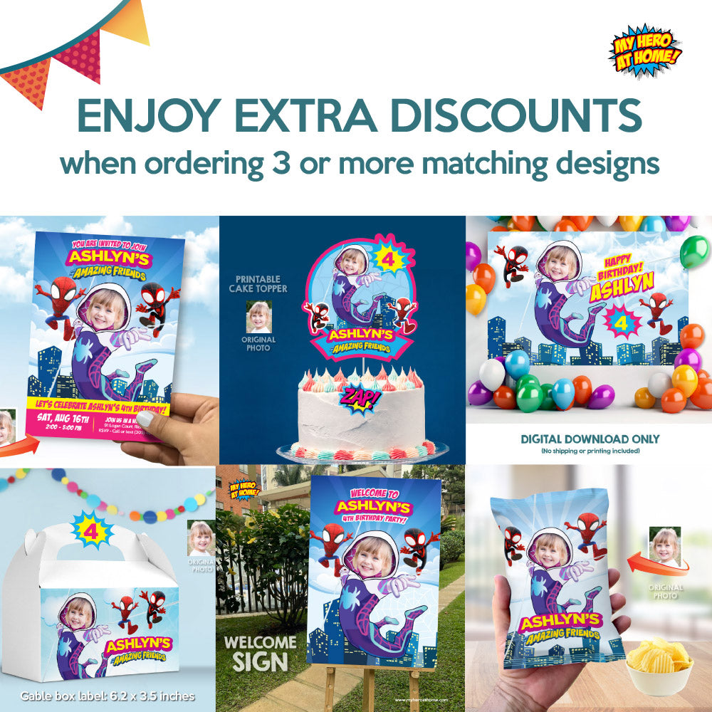 Custom Gwen Stacy birthday Invitation with girl as the star, Ghost spidey party invite. 2039IN