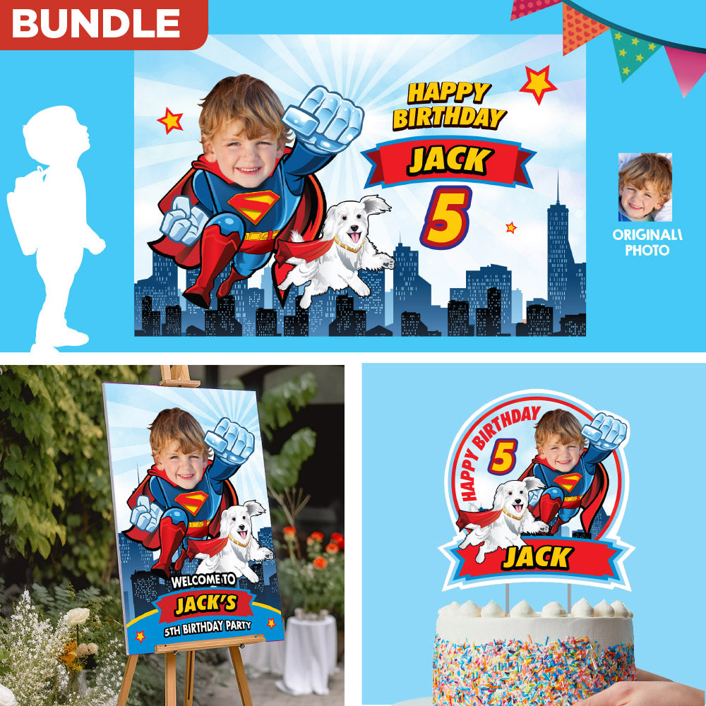 New Superman and Krypto Backdrop, Superman and Krypto birthday banner, Superkid Welcome to my party sign, Easy to do Cake Topper of Superman and Krypto.