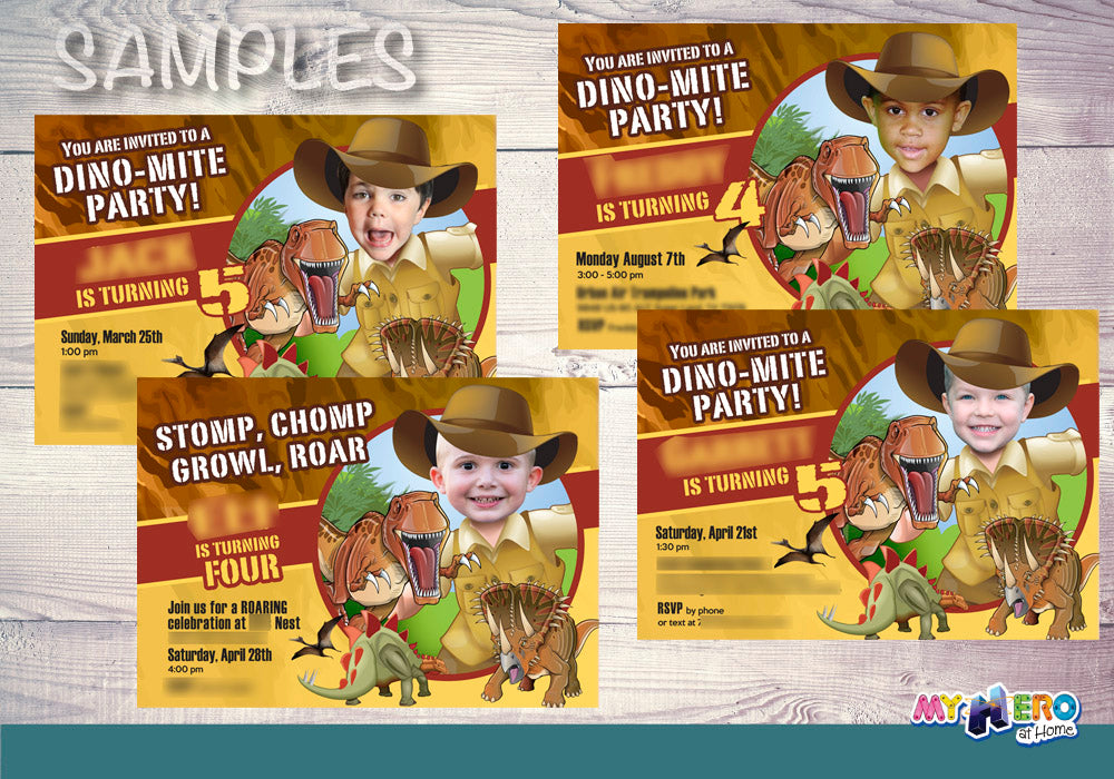 Dinosaurs birthday Party Invite with photo, Dino-Mite photo Invitation. 209