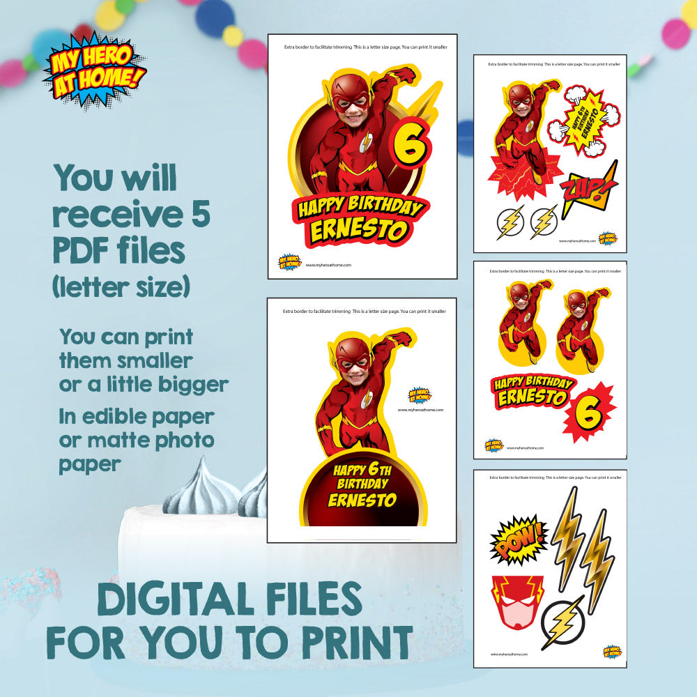 Flash printable cake topper with photo, Easy to do Flash cake decor, Last minute Flash cake. 535