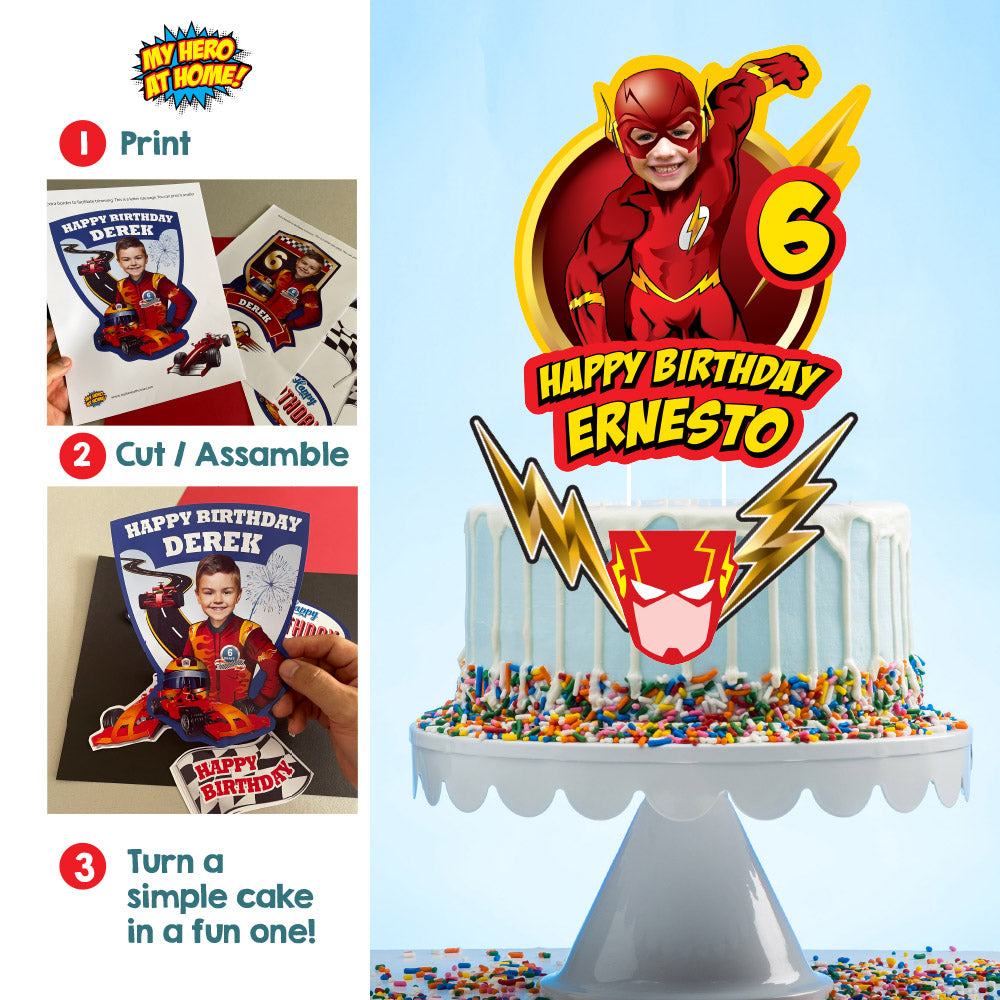 Unique Flash Cake topper with your kid as the Flash, Printable Flash Cake Ideas, Flash Birthday cake decoration, Flash DIY cake, Torta de flash, Torta para Fiesta de Flash, Printable Flash cake topper, Flash photo cake topper.