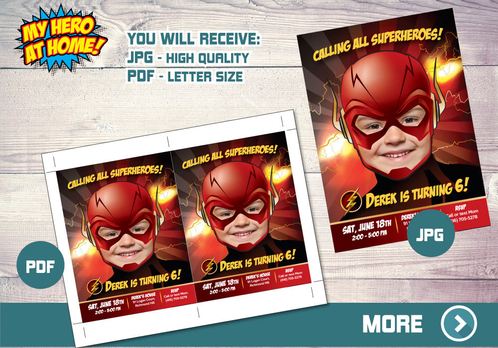 Custom Flash party Invitation, Flash birthday photo Invitation, Flash template. 084