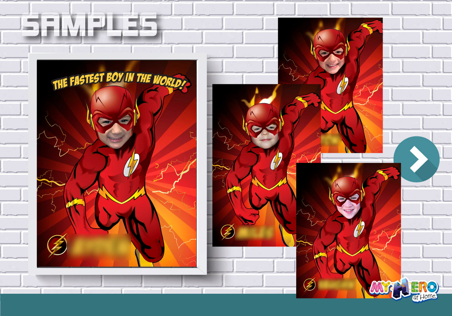 Unique Flash Poster with your kid as the fastest superhero, Flash gifts with photo. 149PG