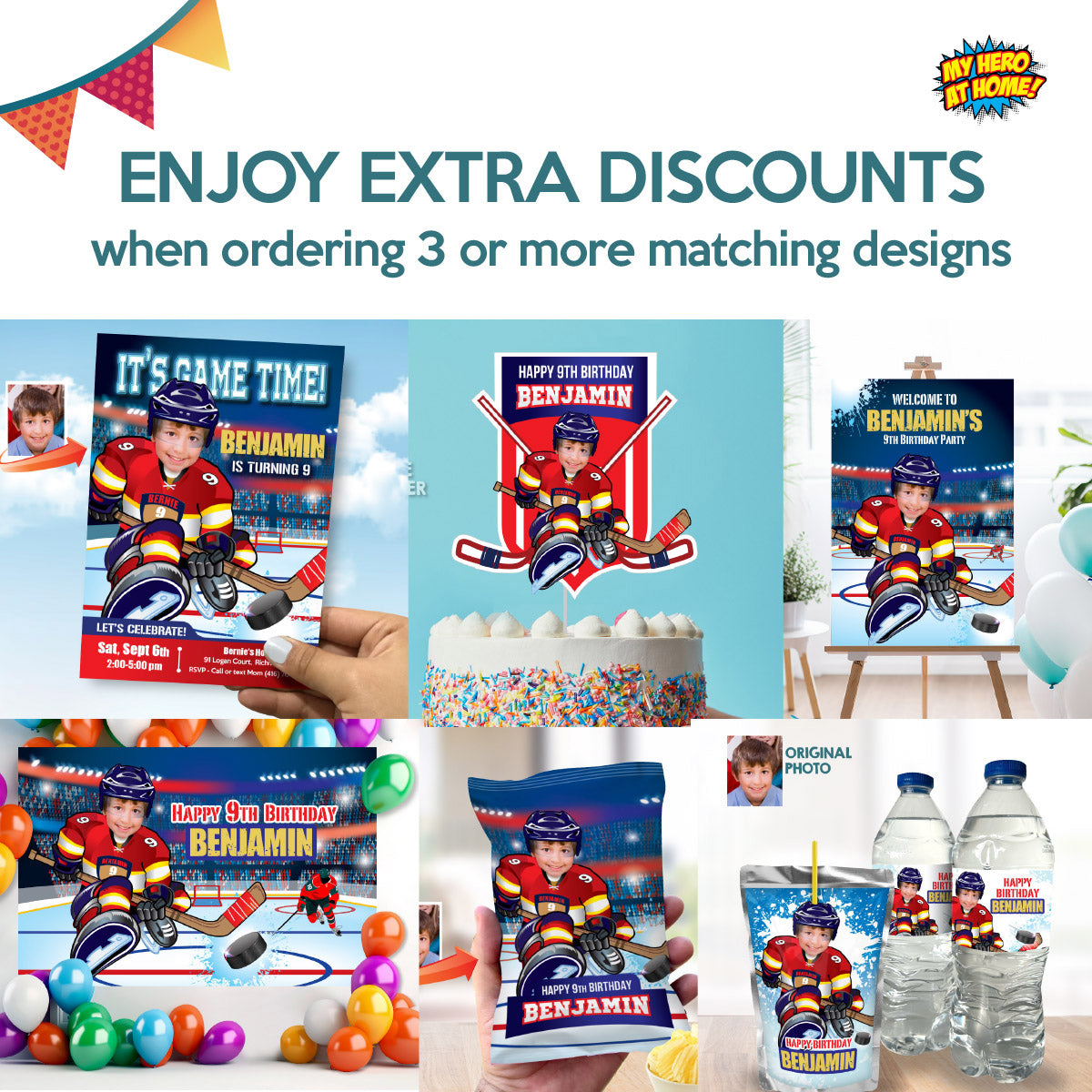 Florida Panthers Chips Bags wrappers with birthday kid as player, Panthers snacks labels. 377CB