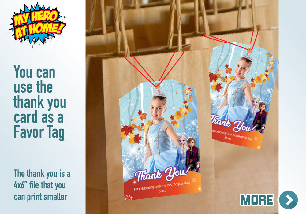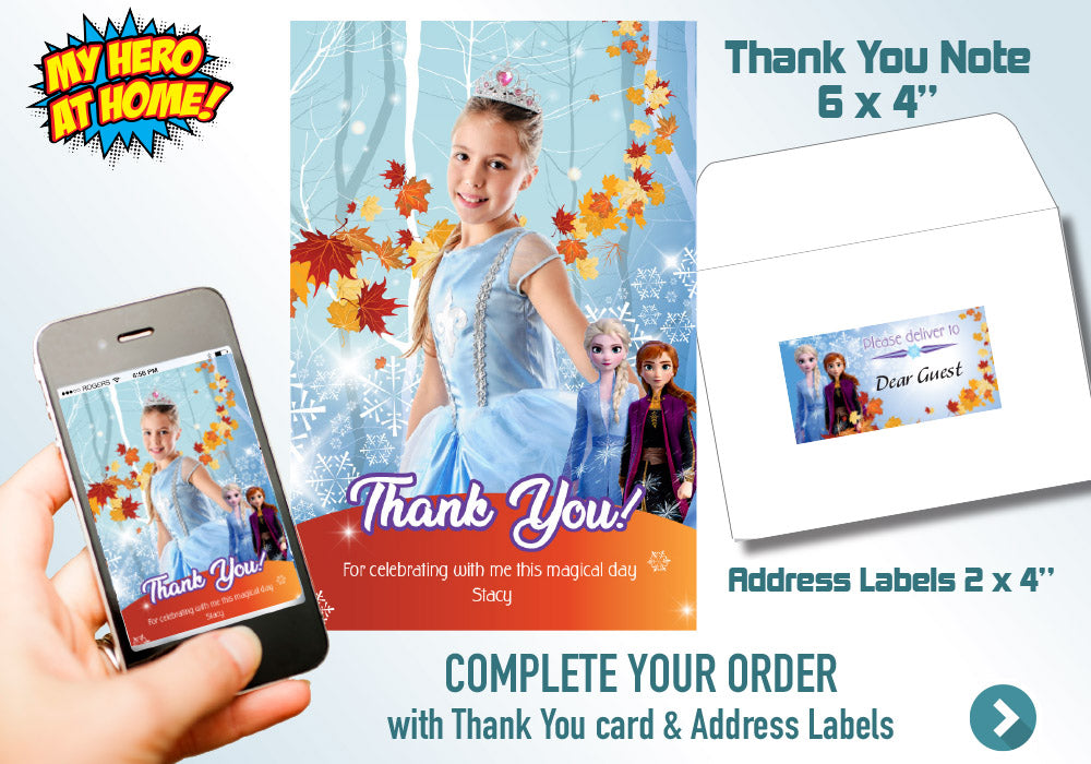 Personalized Frozen Invitation with the photo of your child in her Frozen costume. Frozen 2 invitation with photo. Frozen 2 Photo Invitation. Custom Frozen thank you. Personalized Frozen Favor tags. Custom Frozen theme party.