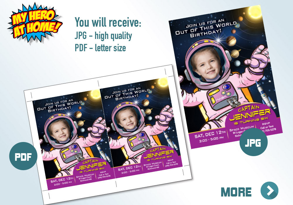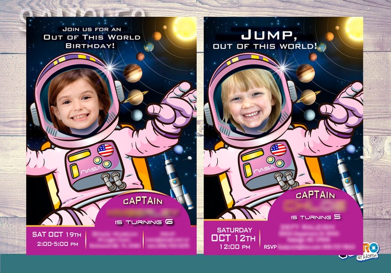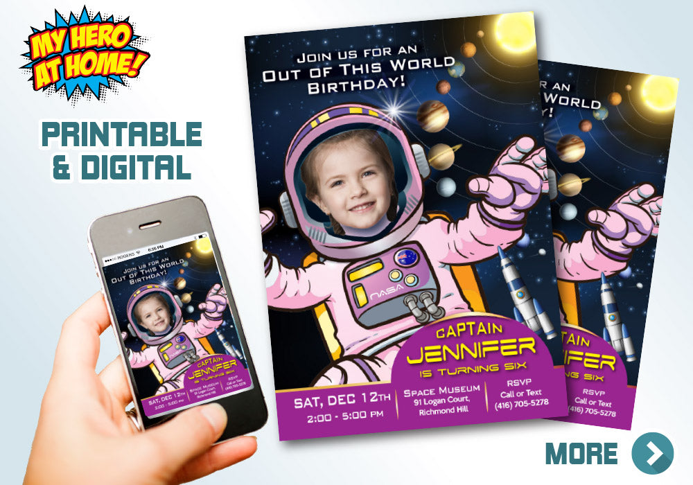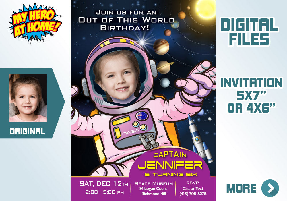 Turn your little girl in an Astronaut for her custom Astronaut Birthday Invitation, Astronauts theme party, Astronaut party decor, Astronaut digital invitation, Out of this world invitation, Galaxy party invitation, Solar system birthday, Girl Astronaut favor tags, Girl Astronaut thank you.