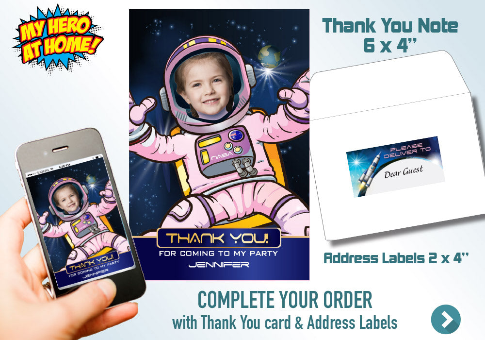 Girl Astronaut photo Invitation, Girl Astronaut Invitation, Out of this world birthday, Outer Space Invitation, Astronaut Thank you. 376C