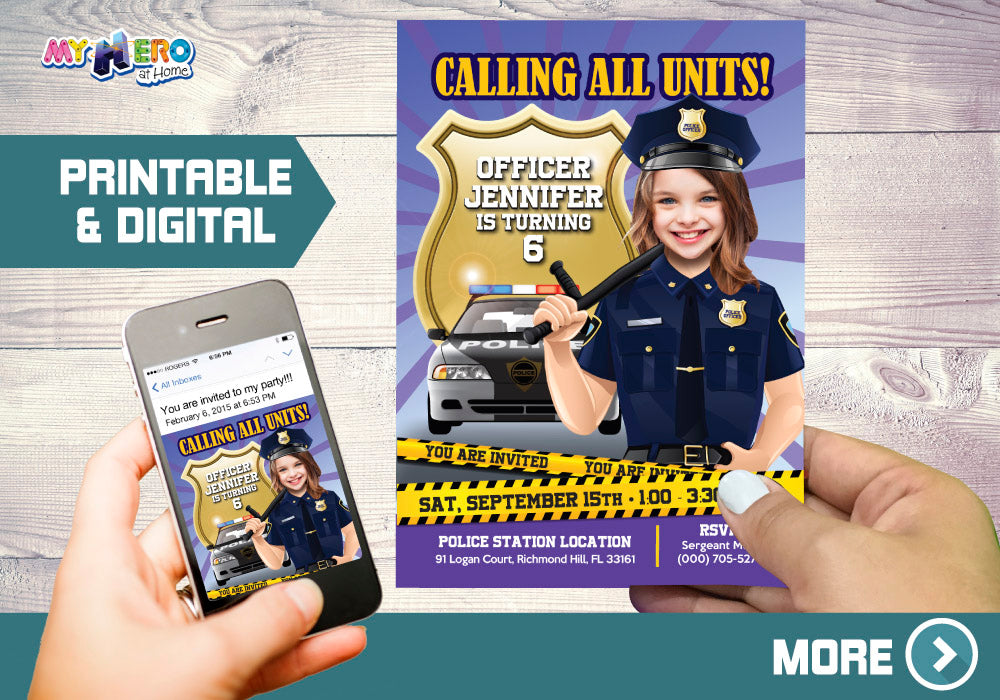Girl Police Invitation, Policewoman Birthday Invitation, Police woman Digital, Police birthday Ideas for girls. 234