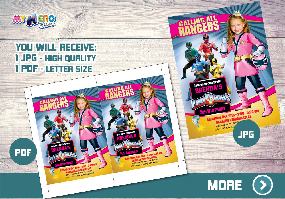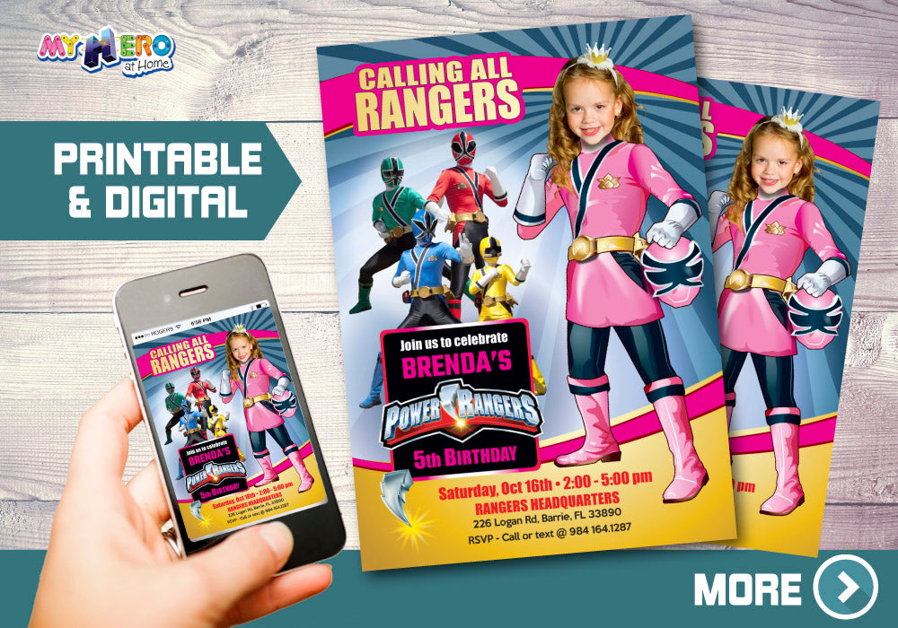 Girls Power Rangers photo Invitation, Pink Power Rangers Party Invitation, Power Rangers theme party, Pink Power Rangers birthday decor, Pink power rangers invitation, Girl power rangers invitation.