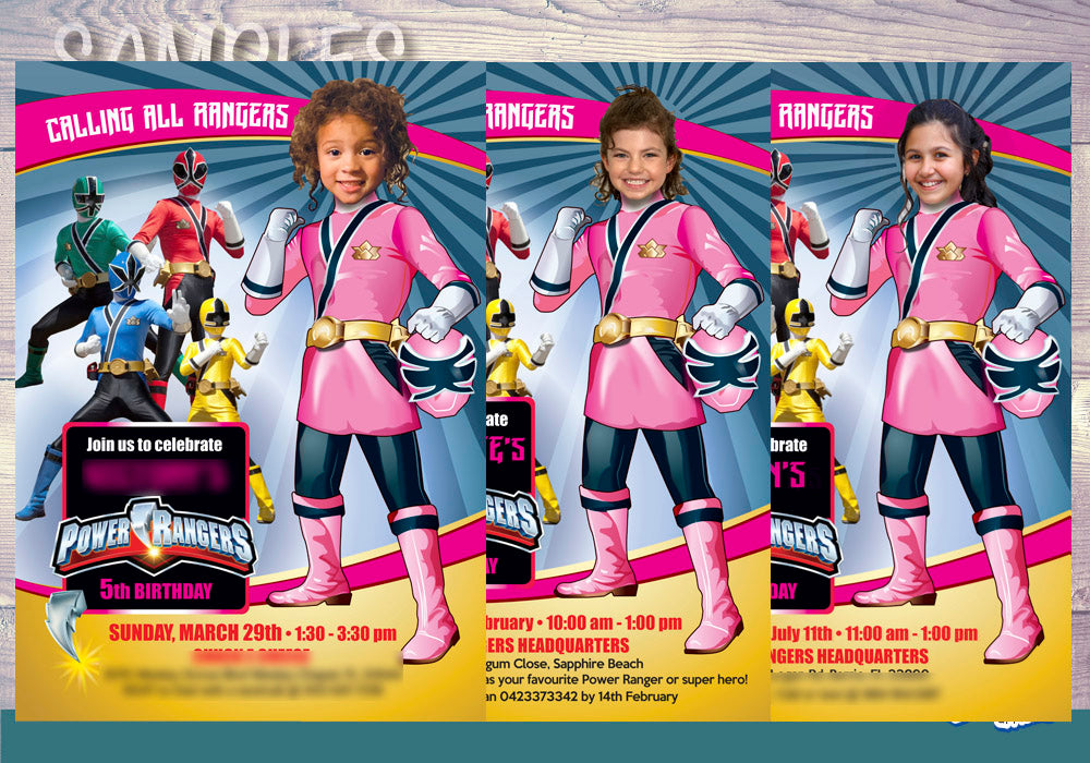 Girl Power Rangers Birthday Invitation, Pink Power Rangers Party photo Invitation. 396