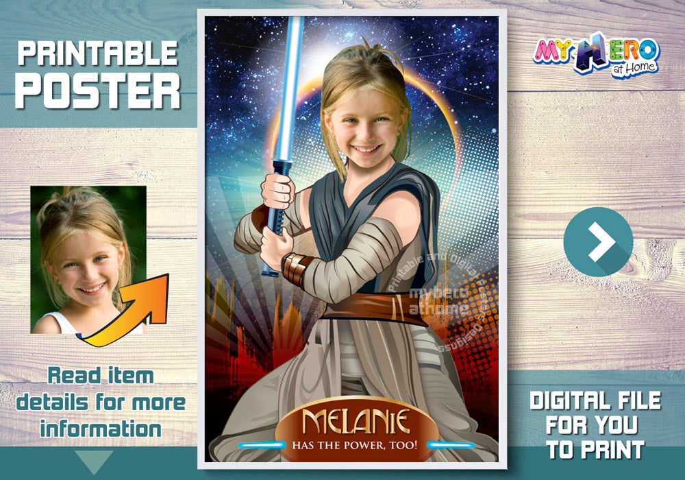 Custom Jedi Rey Poster with photo, Jedi Rey Photo Poster, Jedi Rey Gifts, Jedi Rey Decoration, Jedi Rey Wall Decor, Jedi Rey Party Decor.