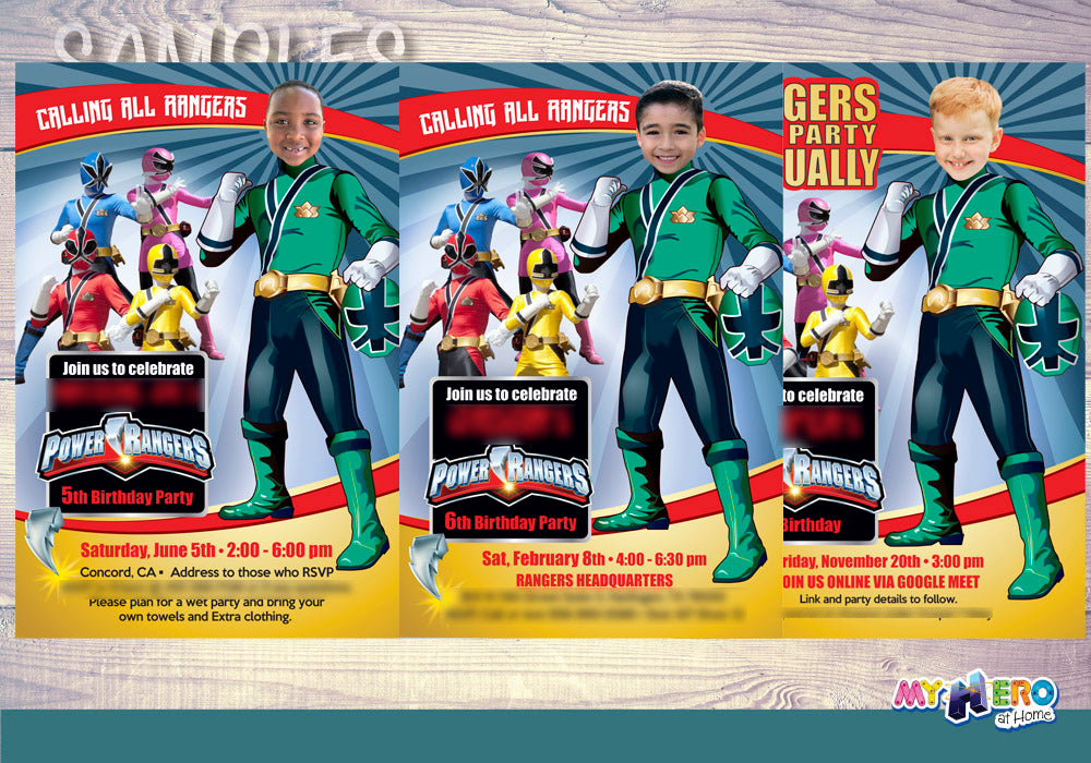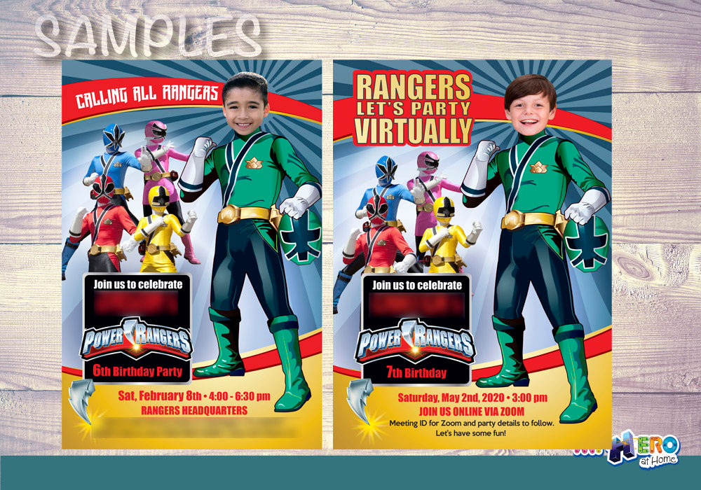 Green Power Rangers birthday party Invitation with your kid as his favorite Power Ranger. 415