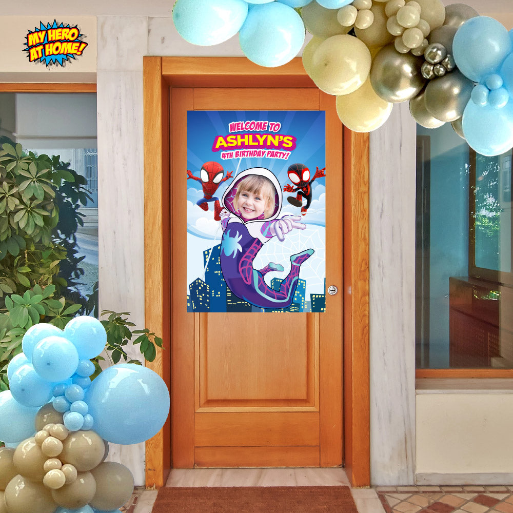Gwen Stacy Party decoration Bundle with photo:Banner / Backdrop, Cake Topper, Welcome Sign. 2039B4