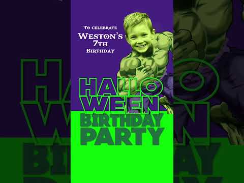 Make your child the hero of the night with this Personalized Hulk Birthday Halloween Party Video Invitation! Perfect for little superheroes who love Hulk and Halloween, this unique invitation transforms your birthday boy into Hulk himself, ready to smash and celebrate in style. Halloween Hulk video invitation, Hulk birthday video invitation themed Halloween.