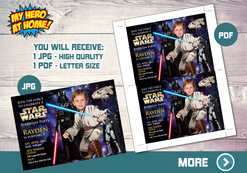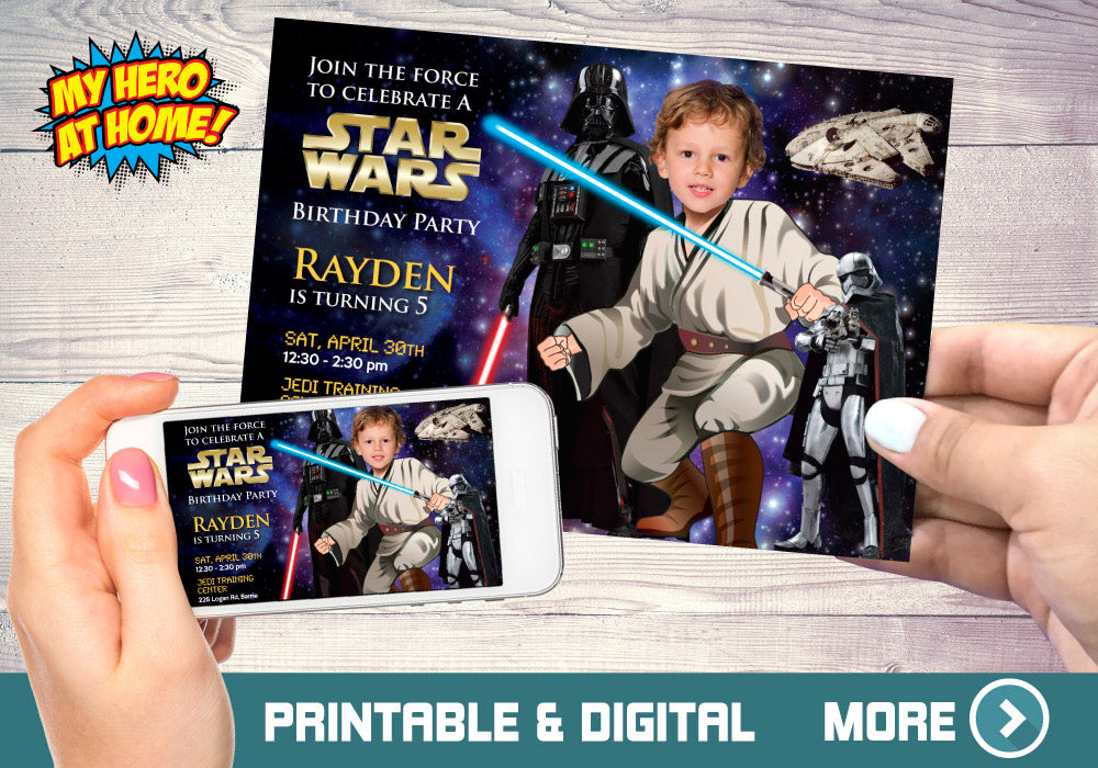Star Wars Birthday Invitation with your kid as Obi-Wan, Jedi training party invitation, Jedi photo Invitation. 005IN