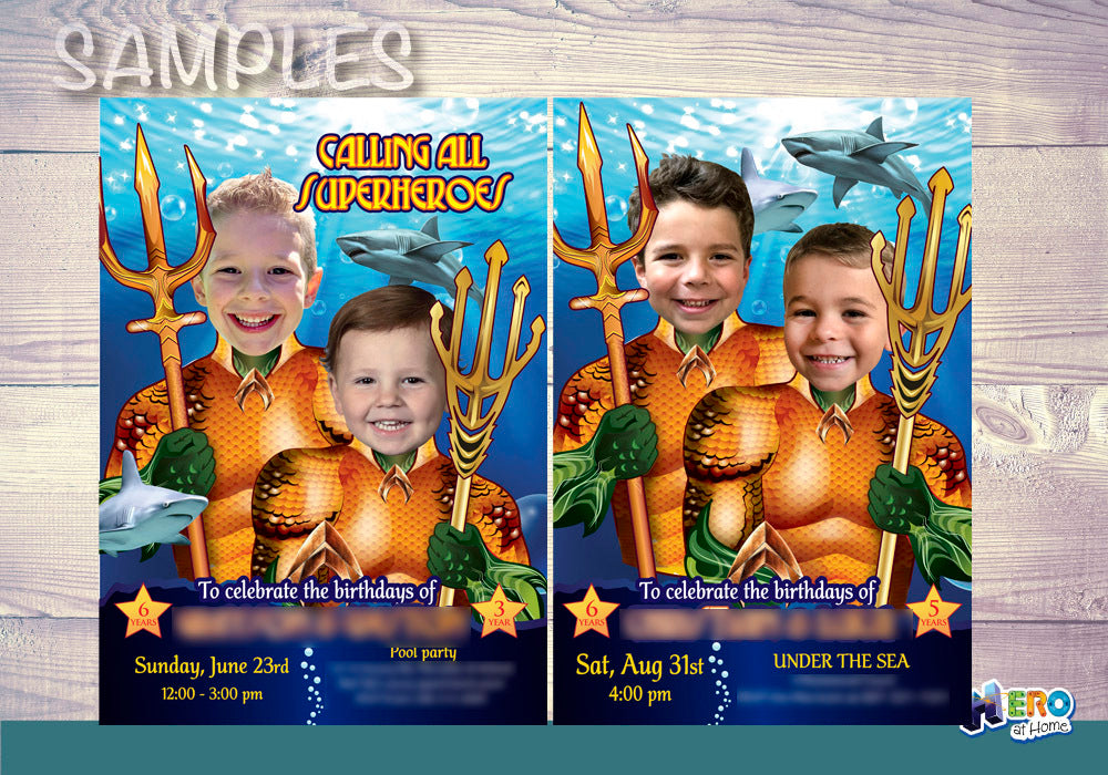 Joint Aquaman Birthday Invitation, Aquaman Siblings Party Invitation, Siblings Aquaman invitation, Joint Aquaman invitation. 196